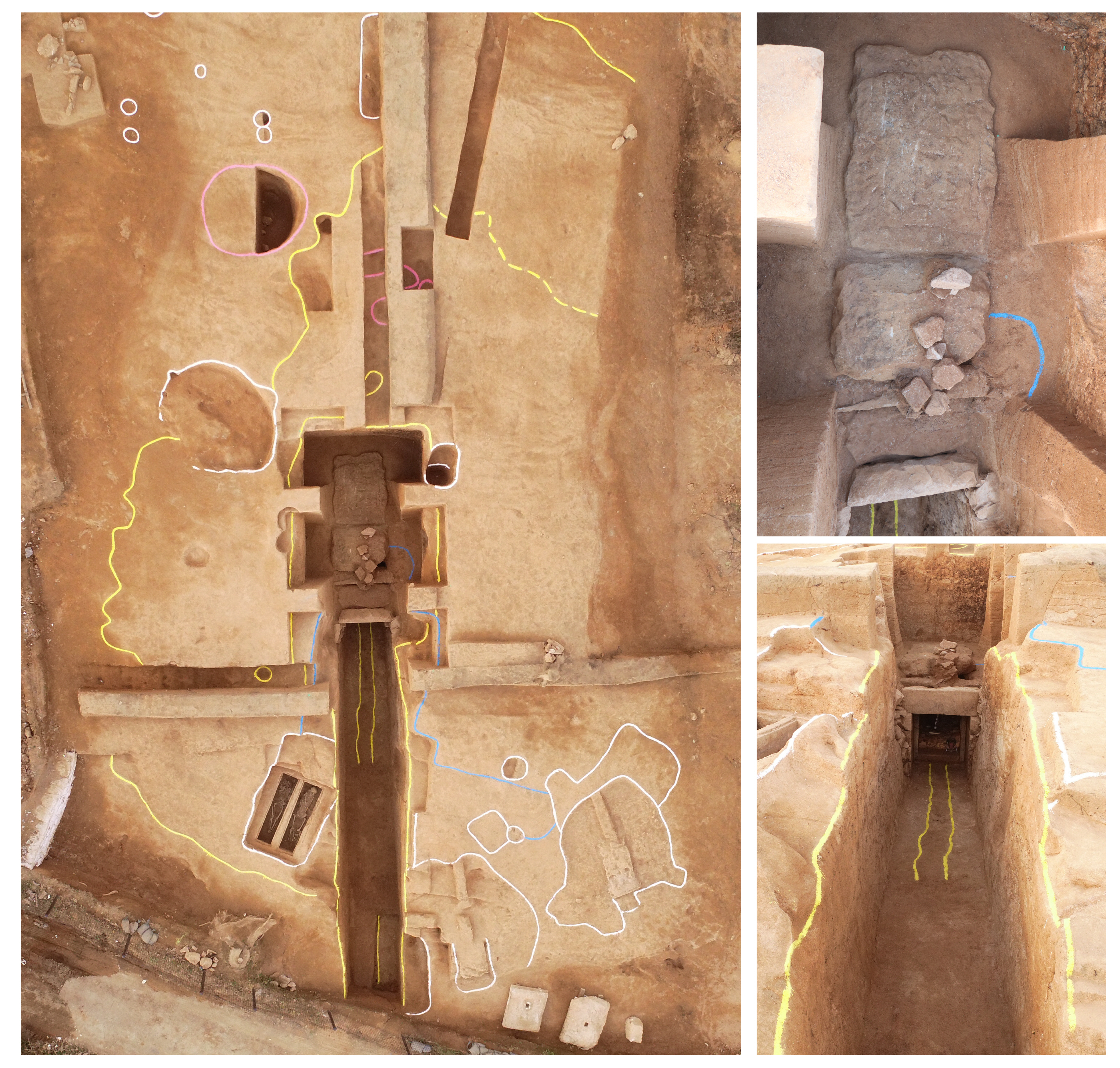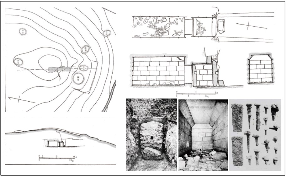 (편집자주 : 한국고고학에서 사용하는 용어는 무족보 천지라, 현실玄室이라고 하는 시체를 두는 방을 기준으로 그 외부로 통하는 길을 각각 연도羨道와 묘도墓道라 하거니와, 이걸 우째 이런 말로 구분하는지 참말로 신통방통 신이경이를 자아내는데 간단히 말해 무덤방에서 무덤 대문으로 통하는 구간을 연도라 하고, 다시 그 대문 밖에서 묘역 밖으로 길게 낸 통로는 묘도라 하는 모양이다. 세상에 이런 어거지 말은 없다.)