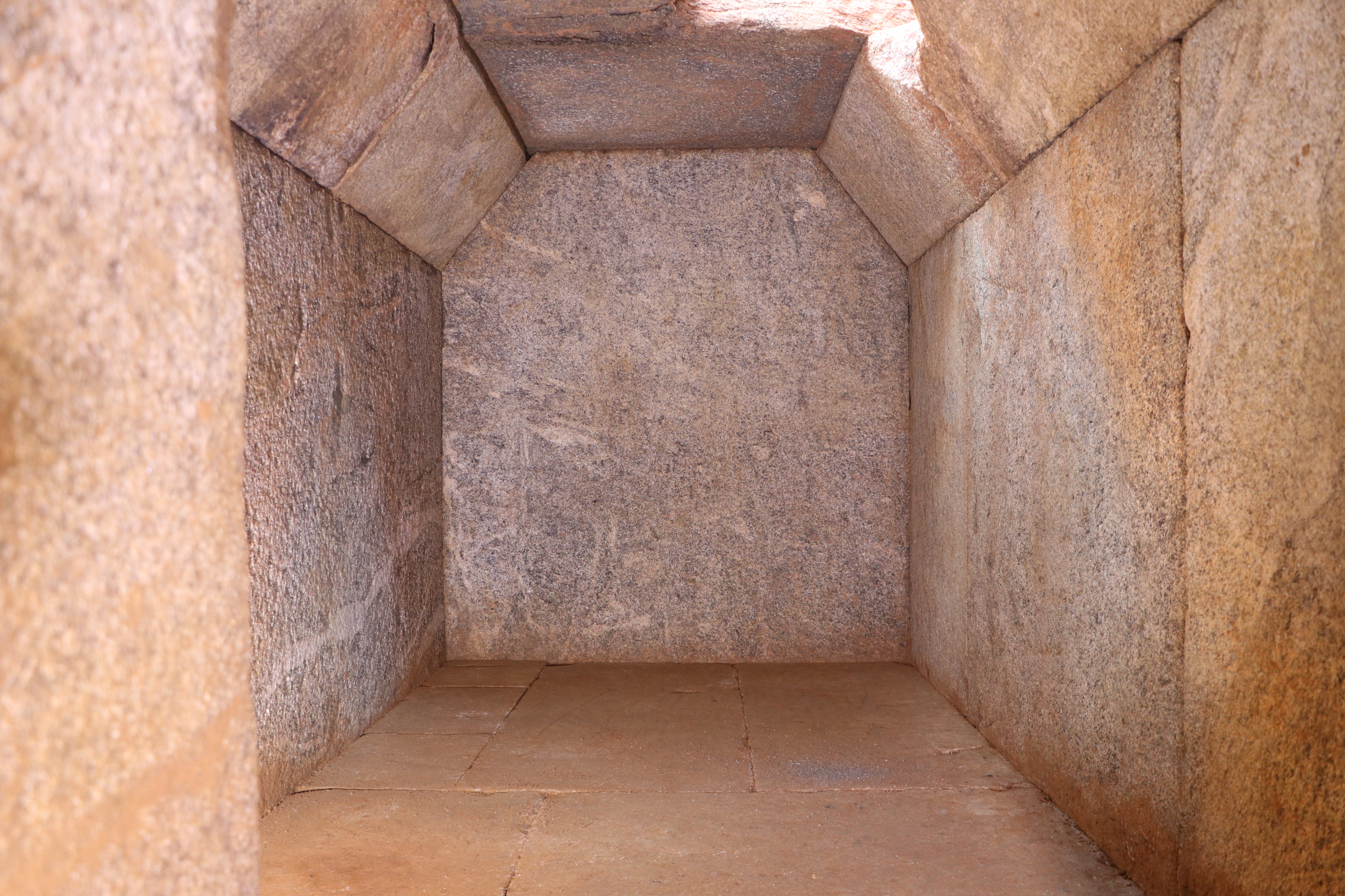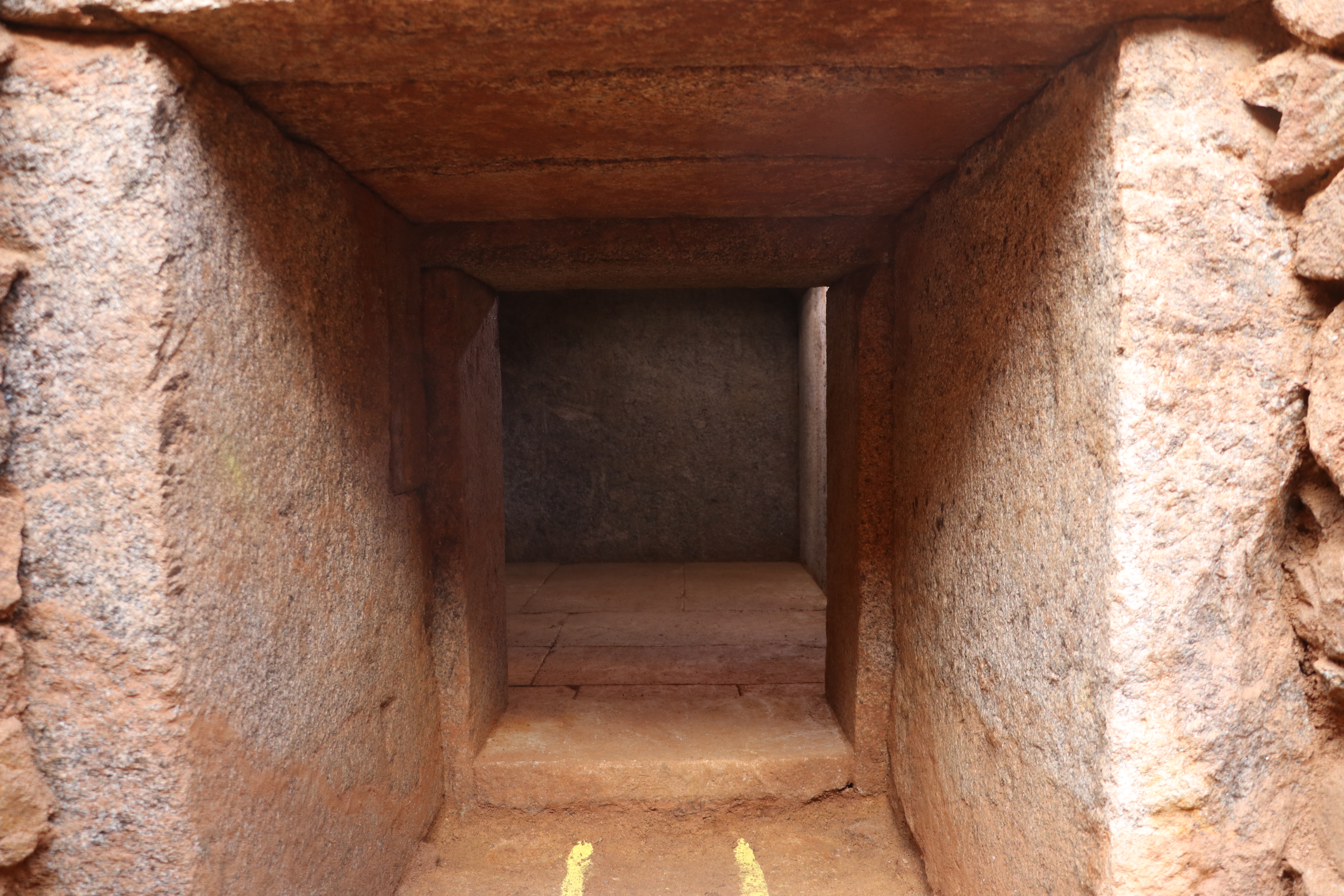 도굴갱이 현실 남동쪽 모서리에서 확인되고, 천장석 남동쪽과 현문 문인방석 일부를 깨져 있어서 도굴이 이루어졌음을 알 수 있다.