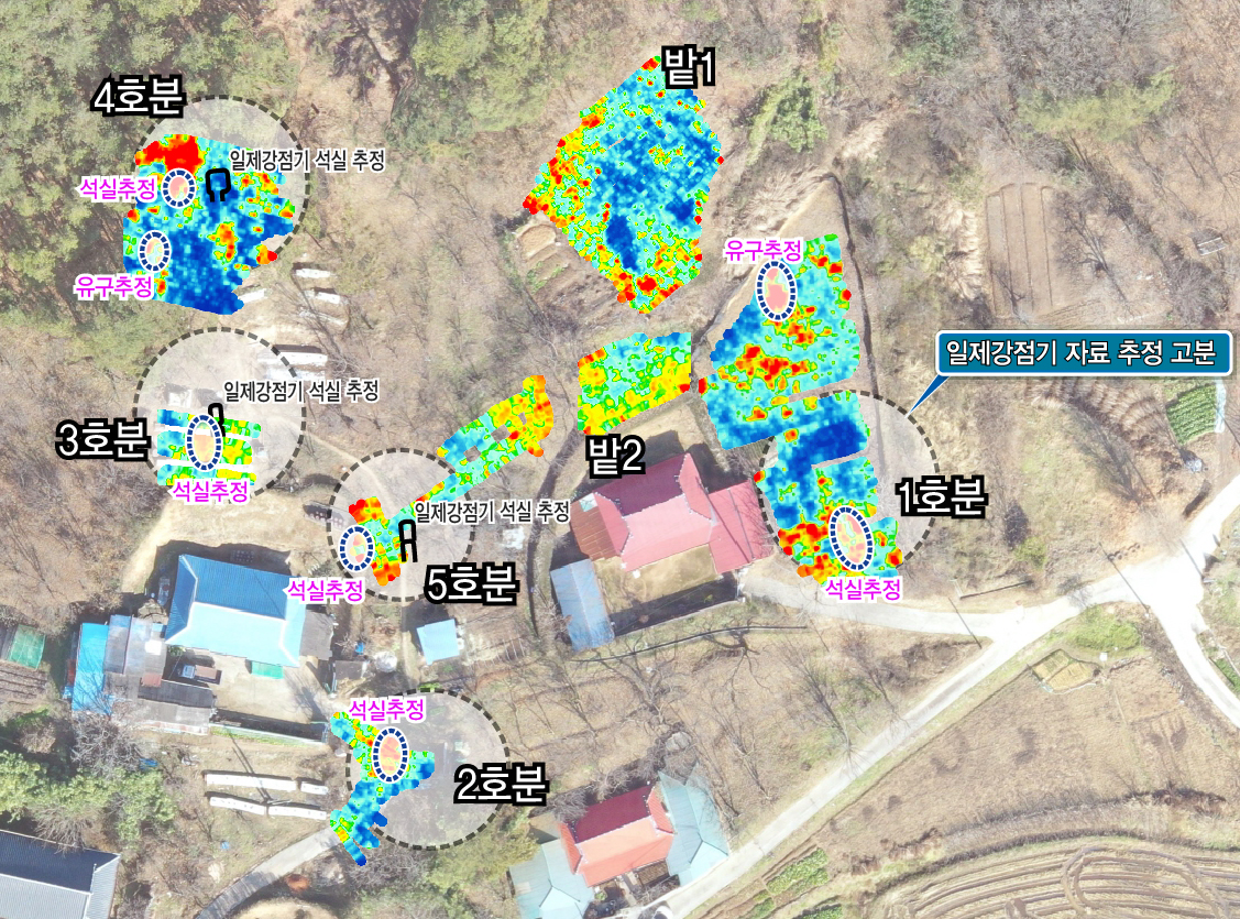 고분 남쪽에서는 역凸자형 묘광 윤곽선과 일제강점기 조사 굴광 흔적도 드러났다.