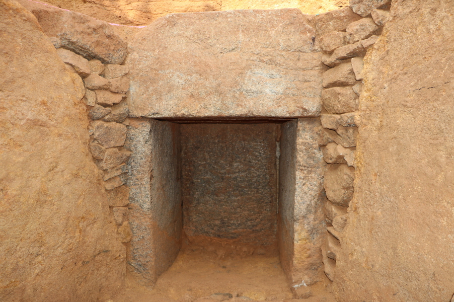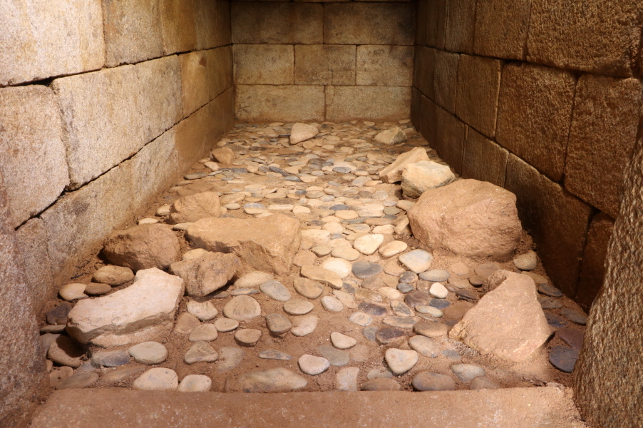 이에 바닥시설 축조양상과 깬돌과의 관계를 확인하고자 탐색시굴갱을 설치하여 내부조사를 진행했다. 마지막으로 석실 벽석 바깥쪽 보강상태와 벽석 결구 상태를 파악하기 위해 현실 묘광과 벽석 사이에 너비 100㎝ 탐색시굴갱을 설치하고는 내부조사를 진행했다.