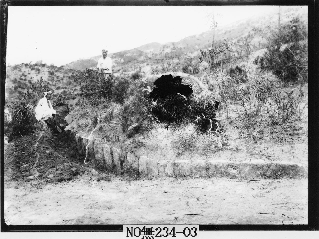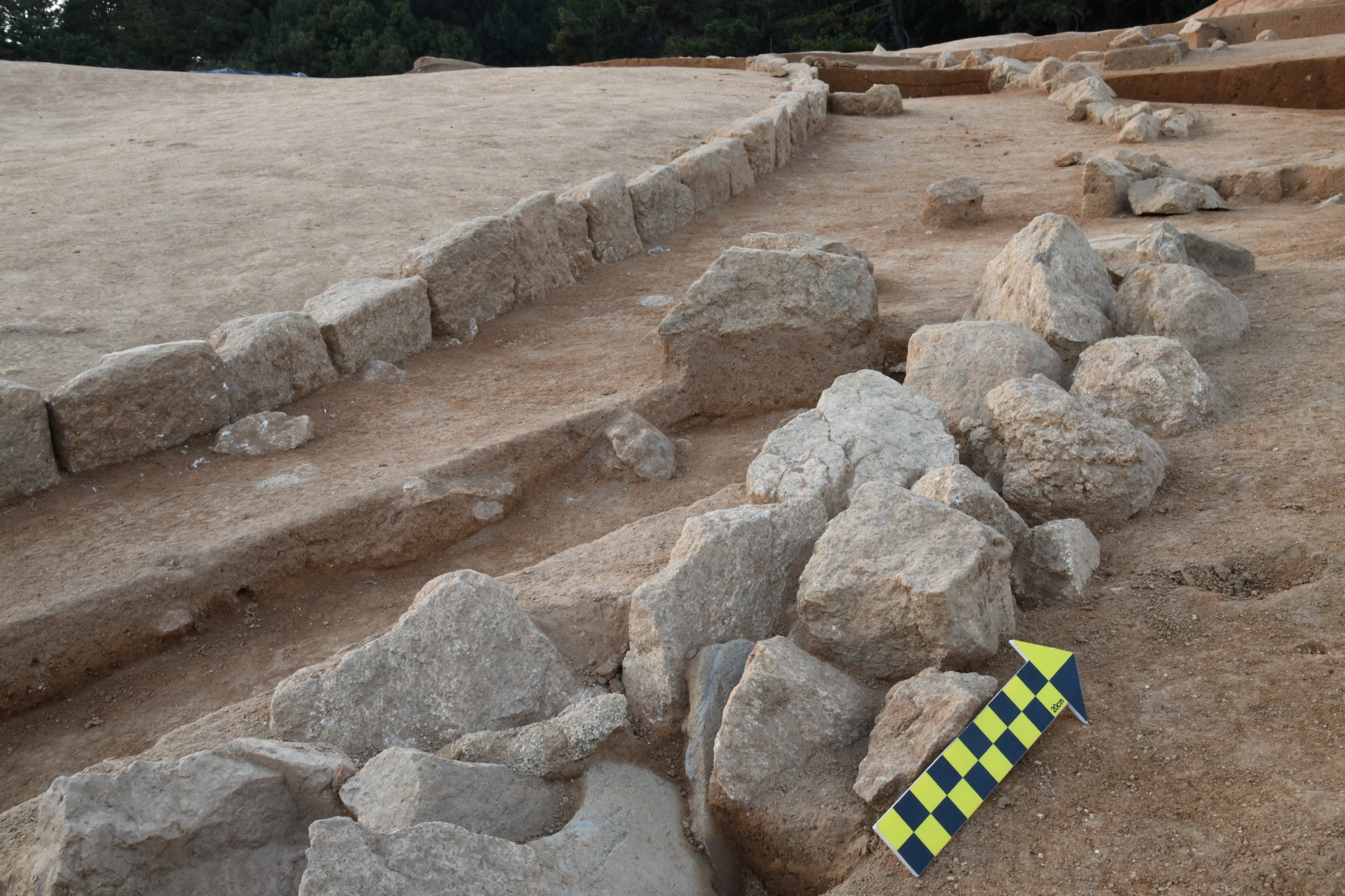 경계지점에 높이 40㎝, 너비 25㎝ 안팎인 다듬은 돌(호석)을 세우고, 그 내부에 봉분을 쌓았다. 이때 호석을 따라 그 바깥으로 1.4m 가량 사이를 두고 깬돌을 열지어 놓았다.