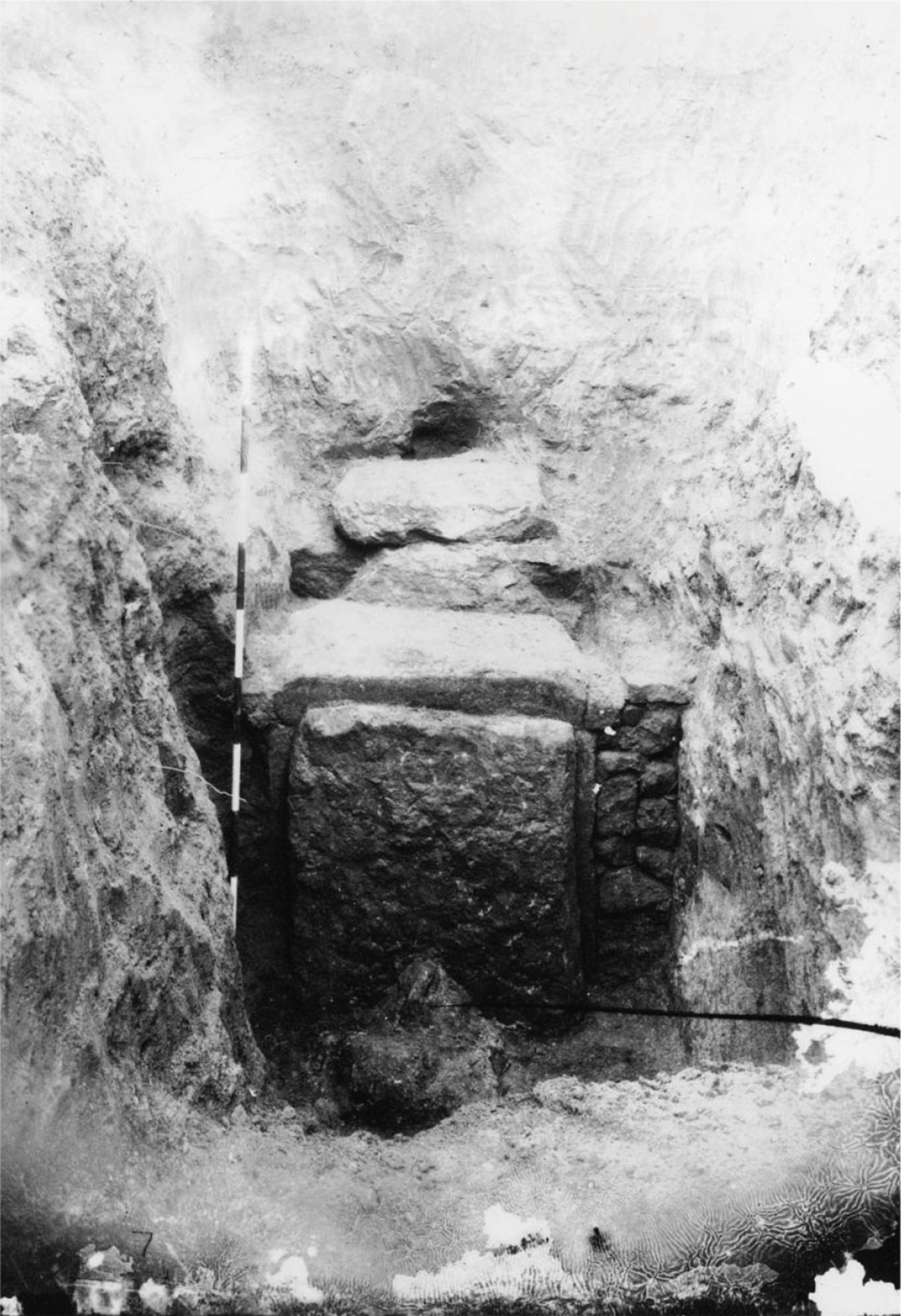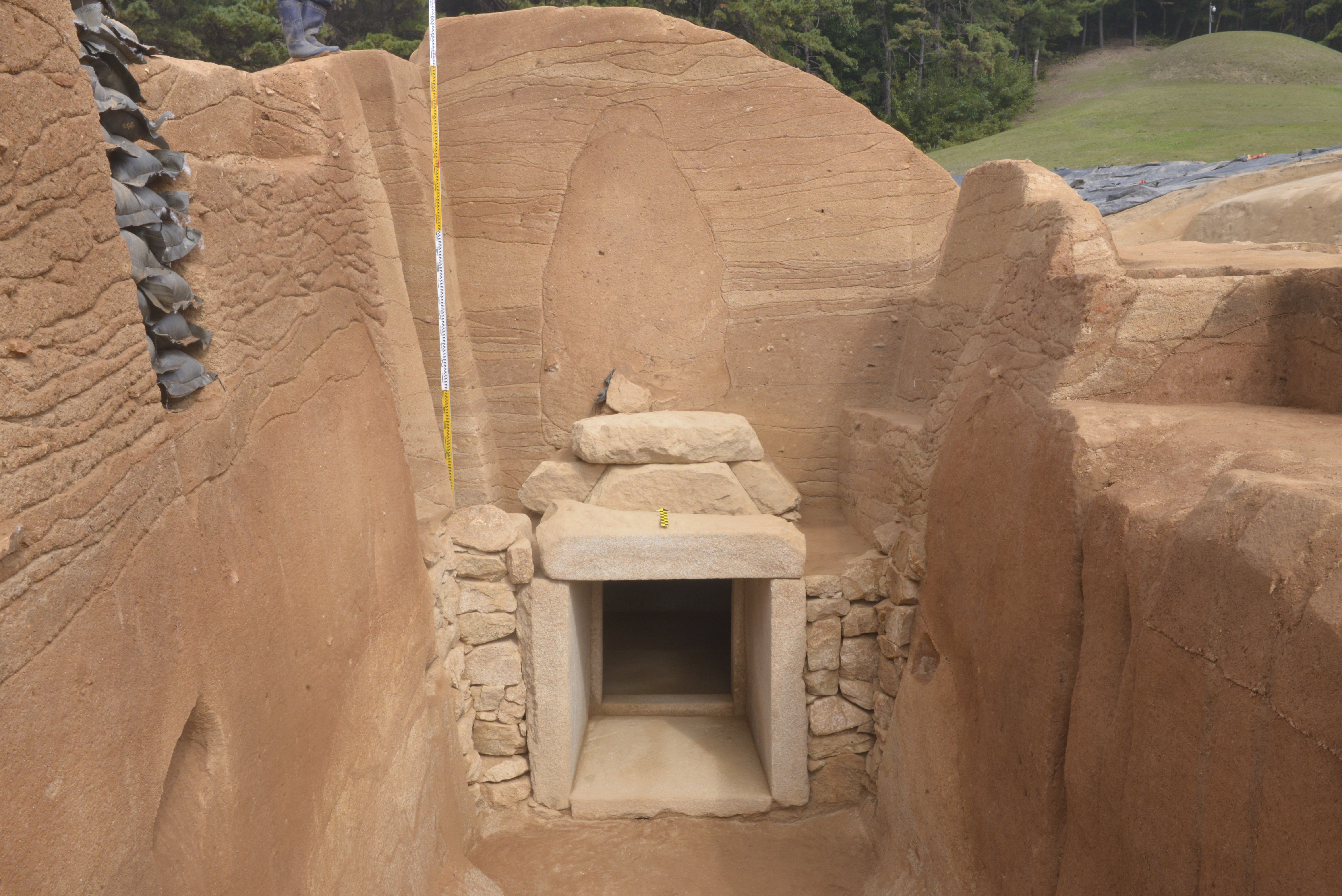 돌방은 잘 다듬은 판돌을 이용해서 만들었다. 봉분은 돌방 천장 기준으로 3.5m가량 남았다.