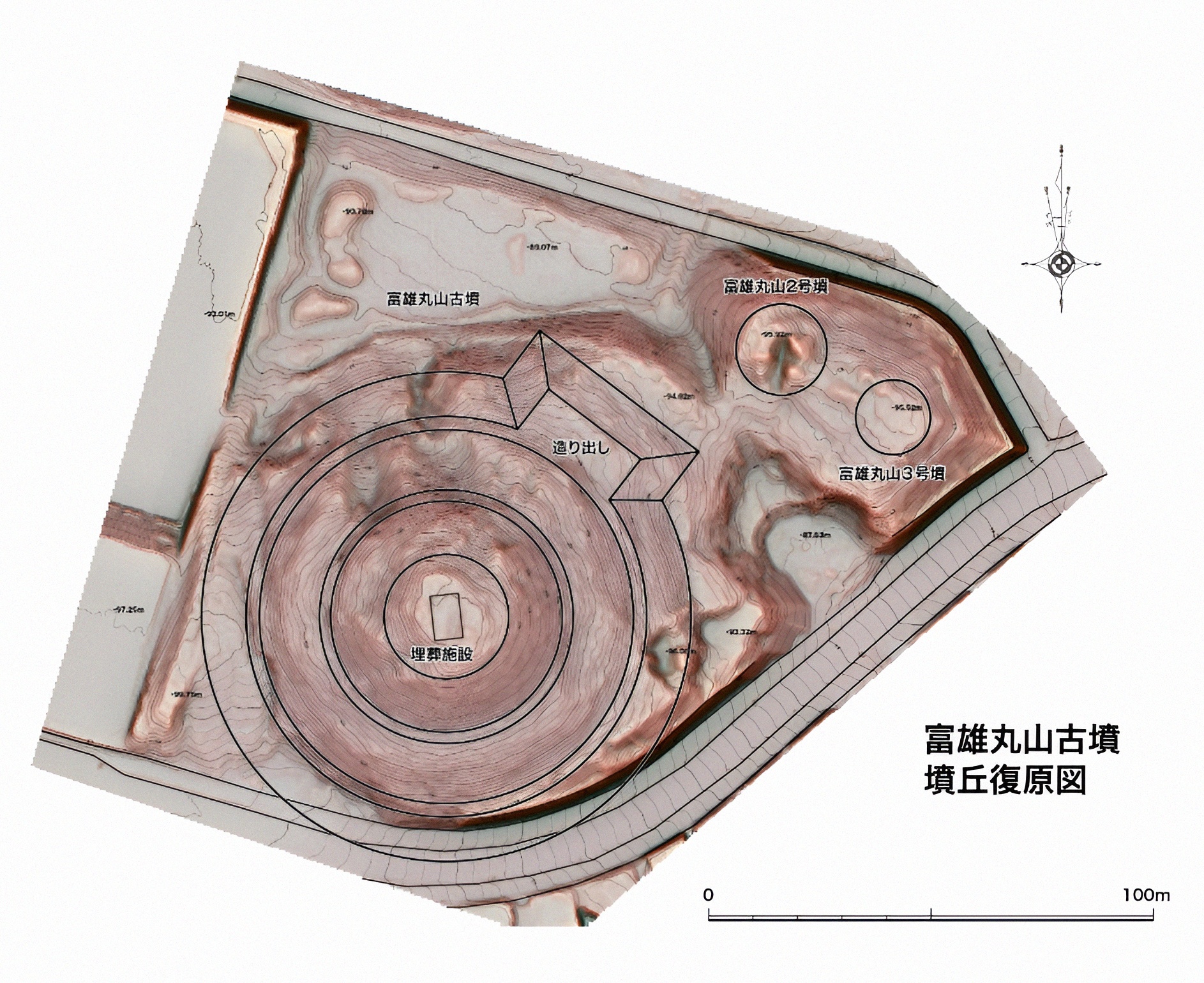 그러다가 평성平成 29년에 나라시교육위원회奈良市教育委員会가 행한 항공 레이저 3차원 측량조사 결과 지름 110m 안팎이며 봉분은 3단으로 구성된 원분임이 판명되었다.