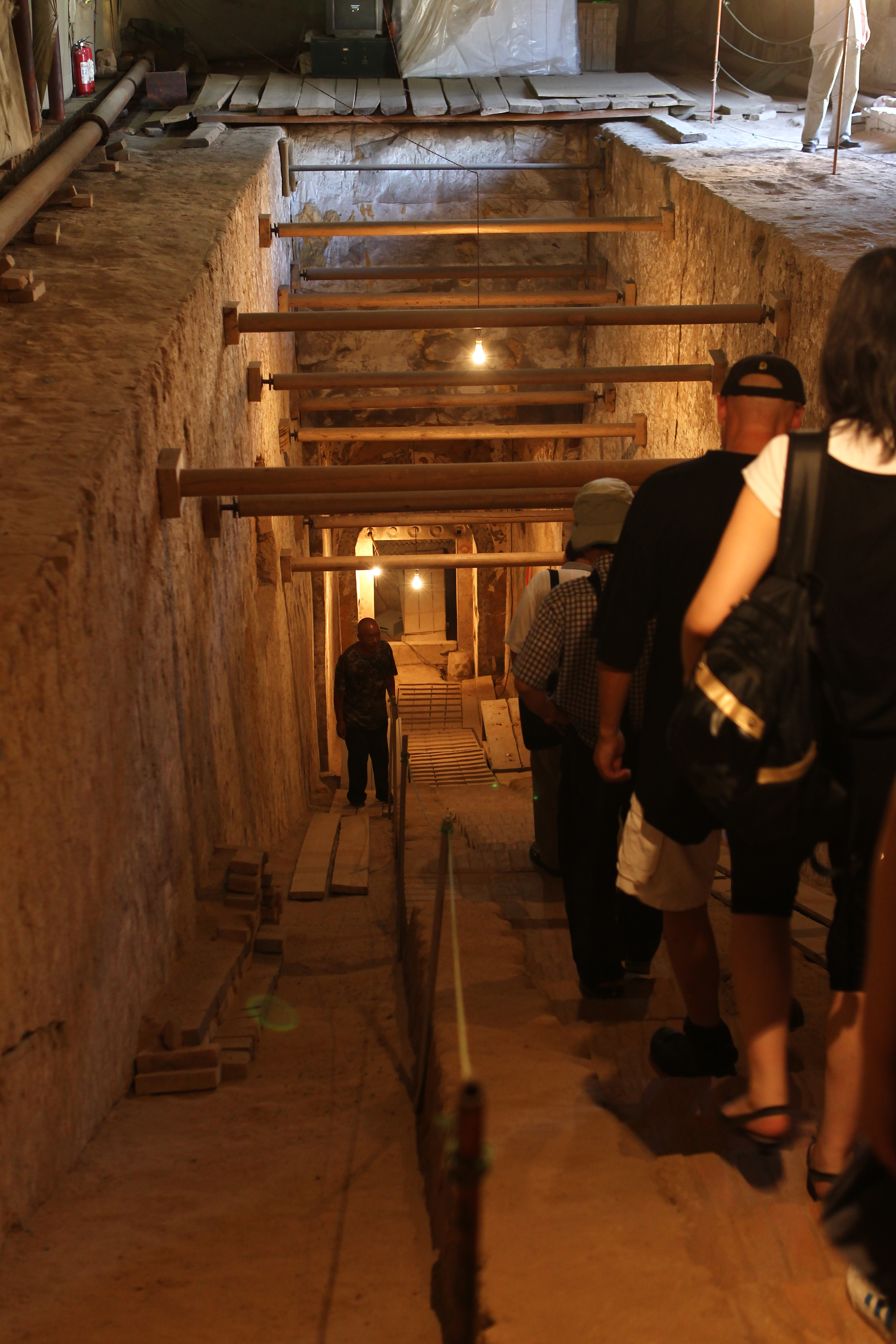 고개를 들어 하늘을 보니, 오색 찬란한 벽면과 대비되어 별다른 장식이 없는 궁륭형 천장이 들어온다. 천장은 가운데를 중심으로 세 군데 정도 구멍이 뚫렸다. 도굴 구멍이다. 사람 몸통이 겨우 지날 만한 저런 구멍 하나를 뚫고는 밧줄을 타고 내려와 귀중품을 훔쳐갔을 것이다. 잇따른 도굴 피해 때문에 막상 정식 발굴을 했을 때 출토 유물은 많이 수습하지 못했다고 한다.