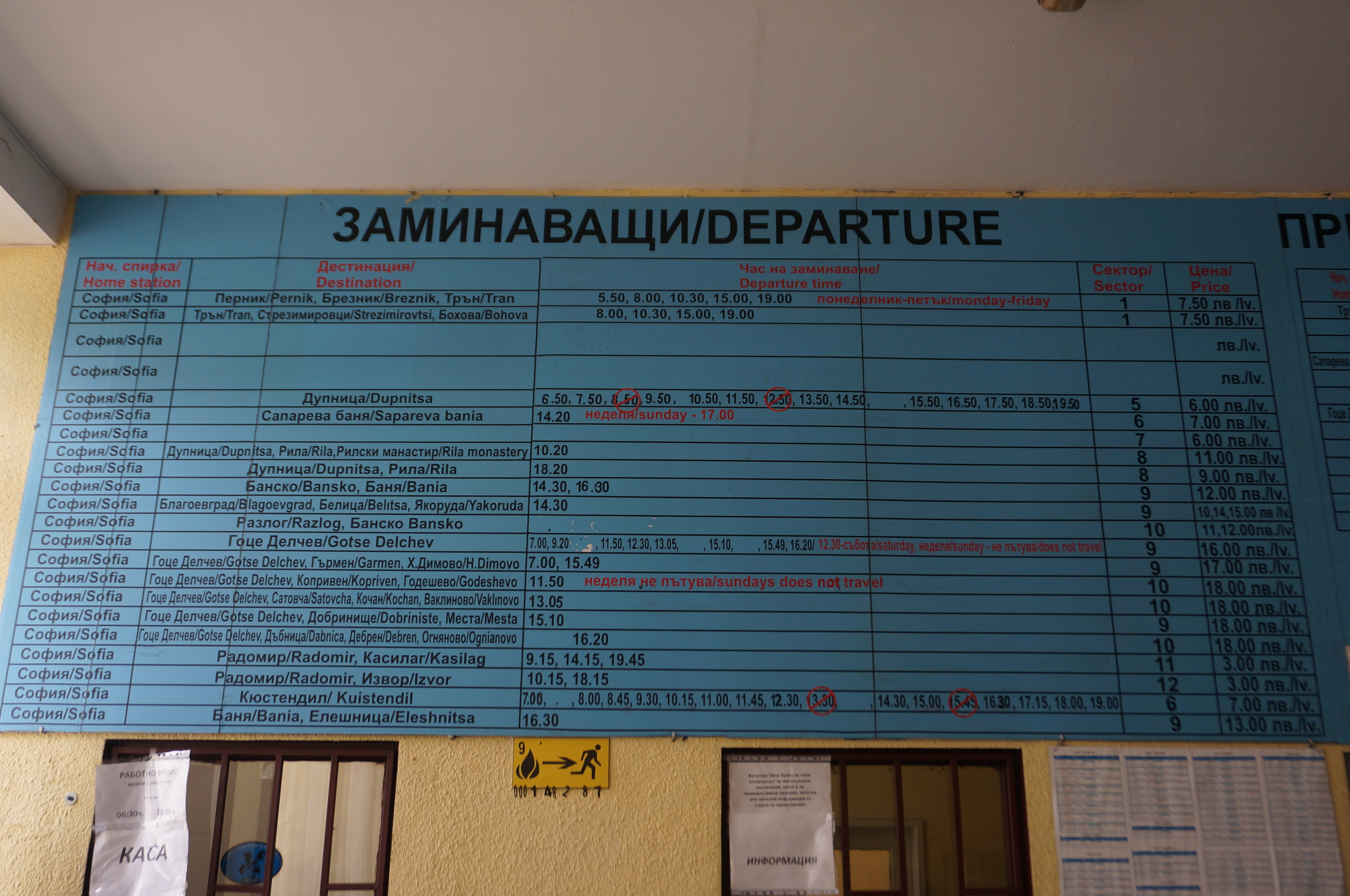 여기서 중요한 점 : 계절따라 날씨따라 버스가 소피아로 되돌아가는 시간이 조금씩 다르기 때문에, 몇 시에 되돌아가는지 꼭 시간을 물어봐야 한다.