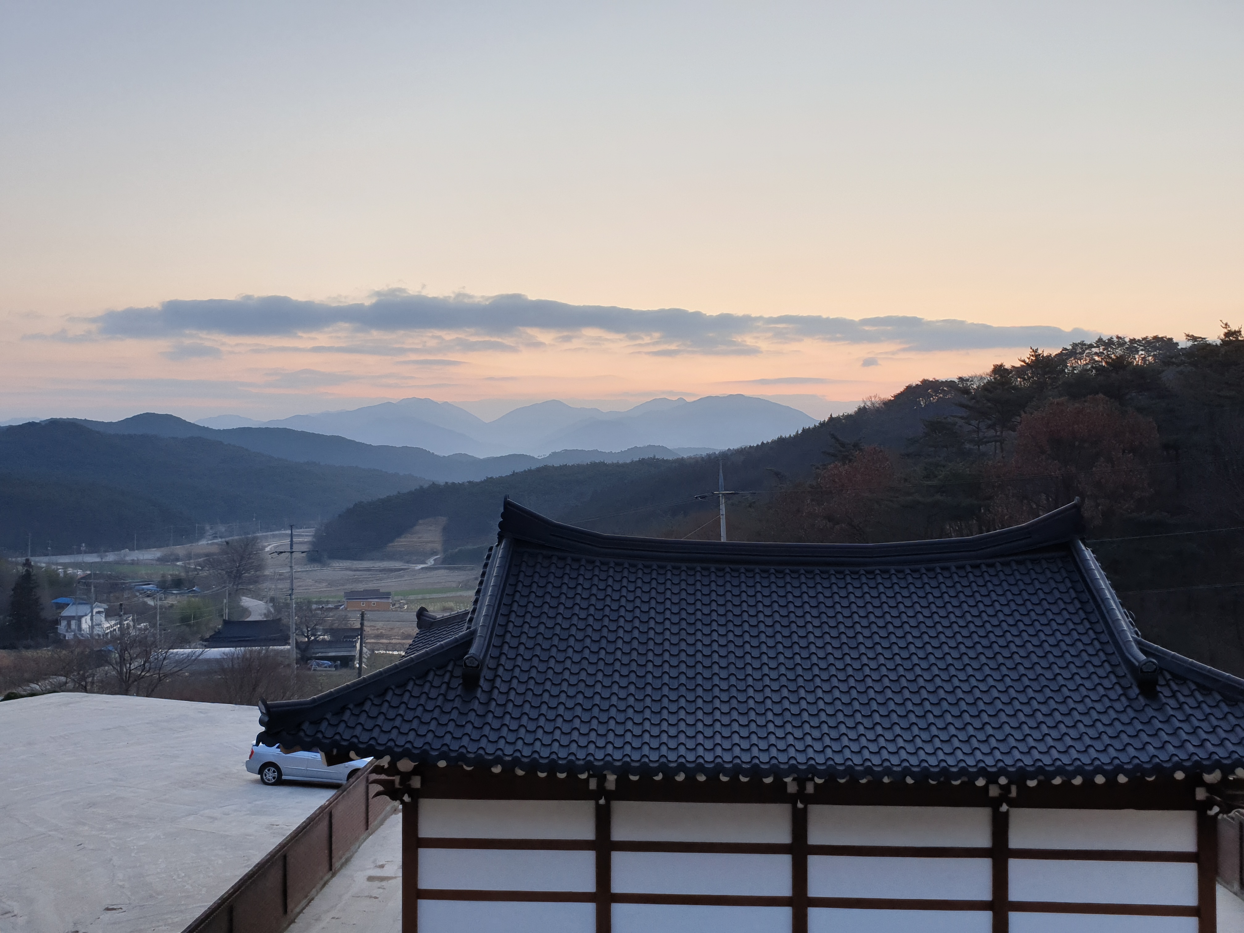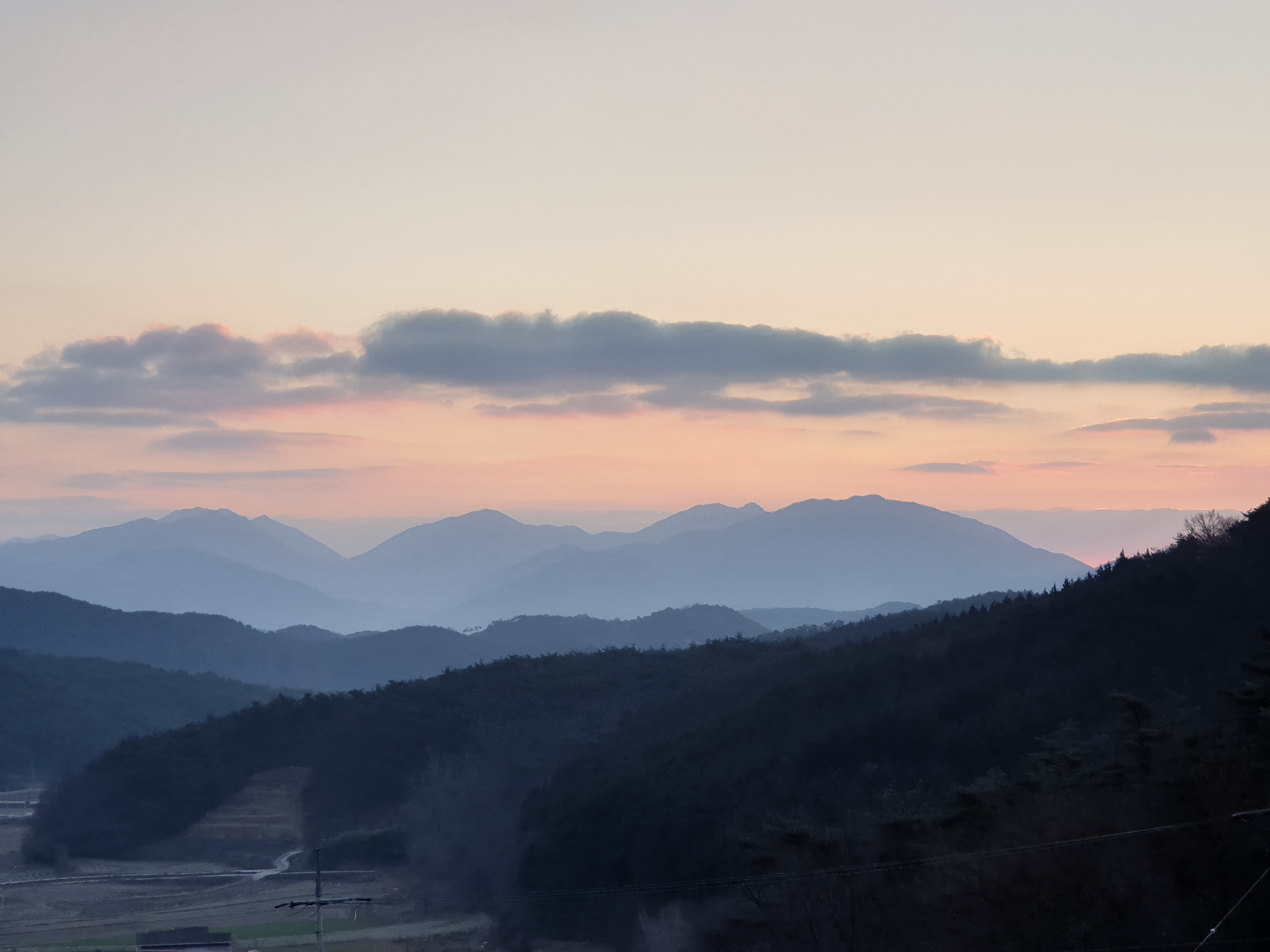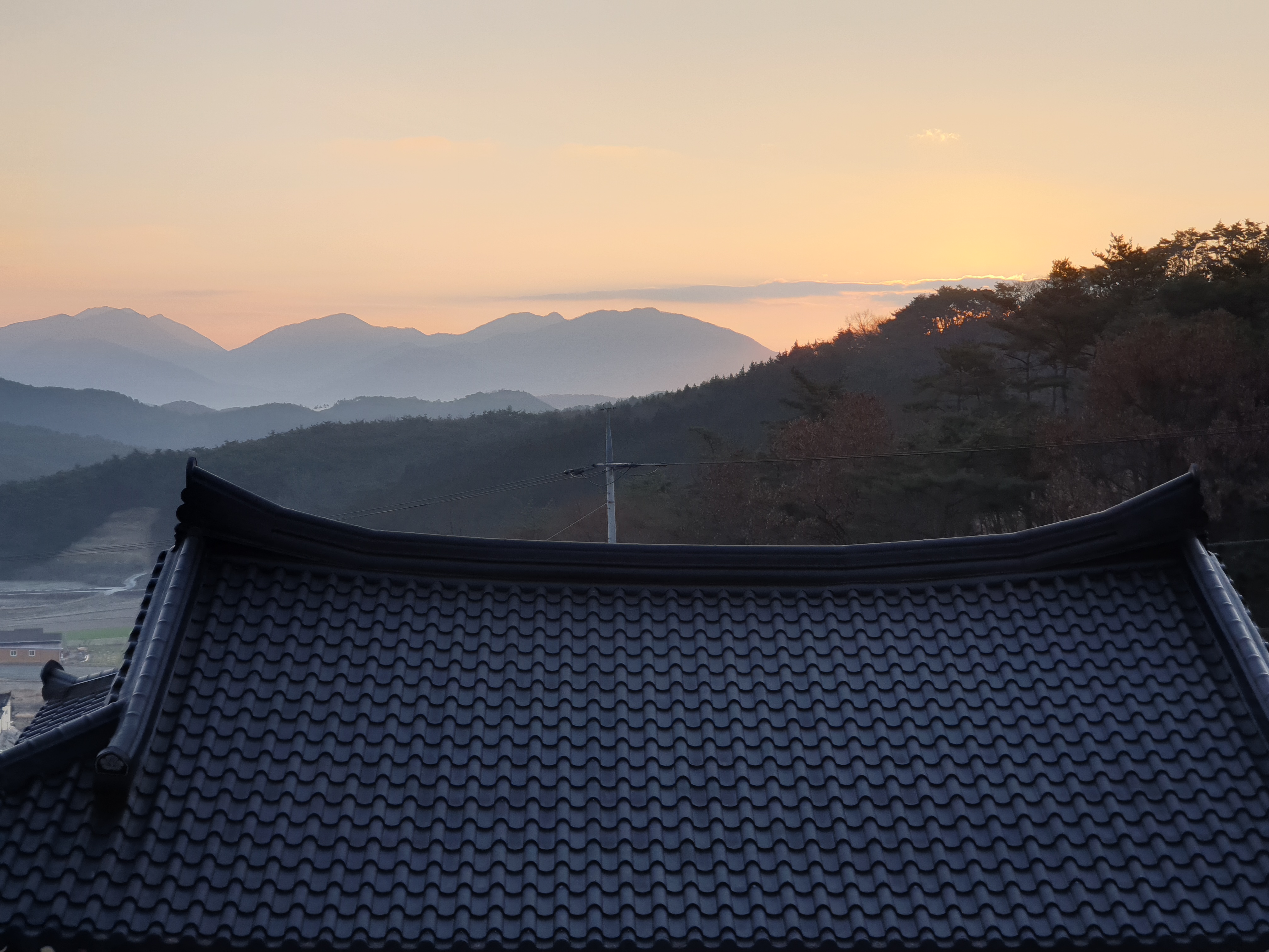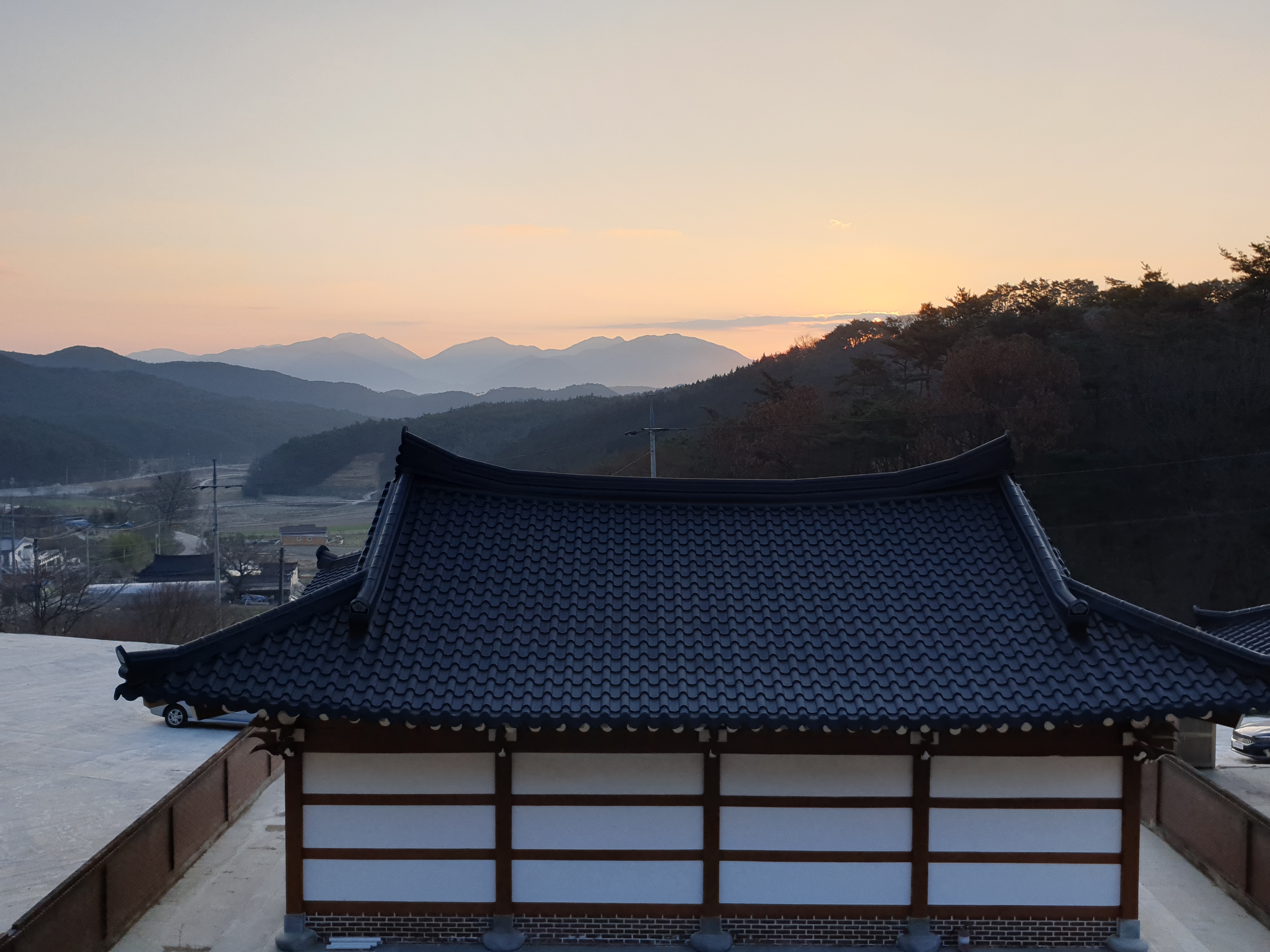 하남정사 동산 우흐로 해가 고개를 들이민다.