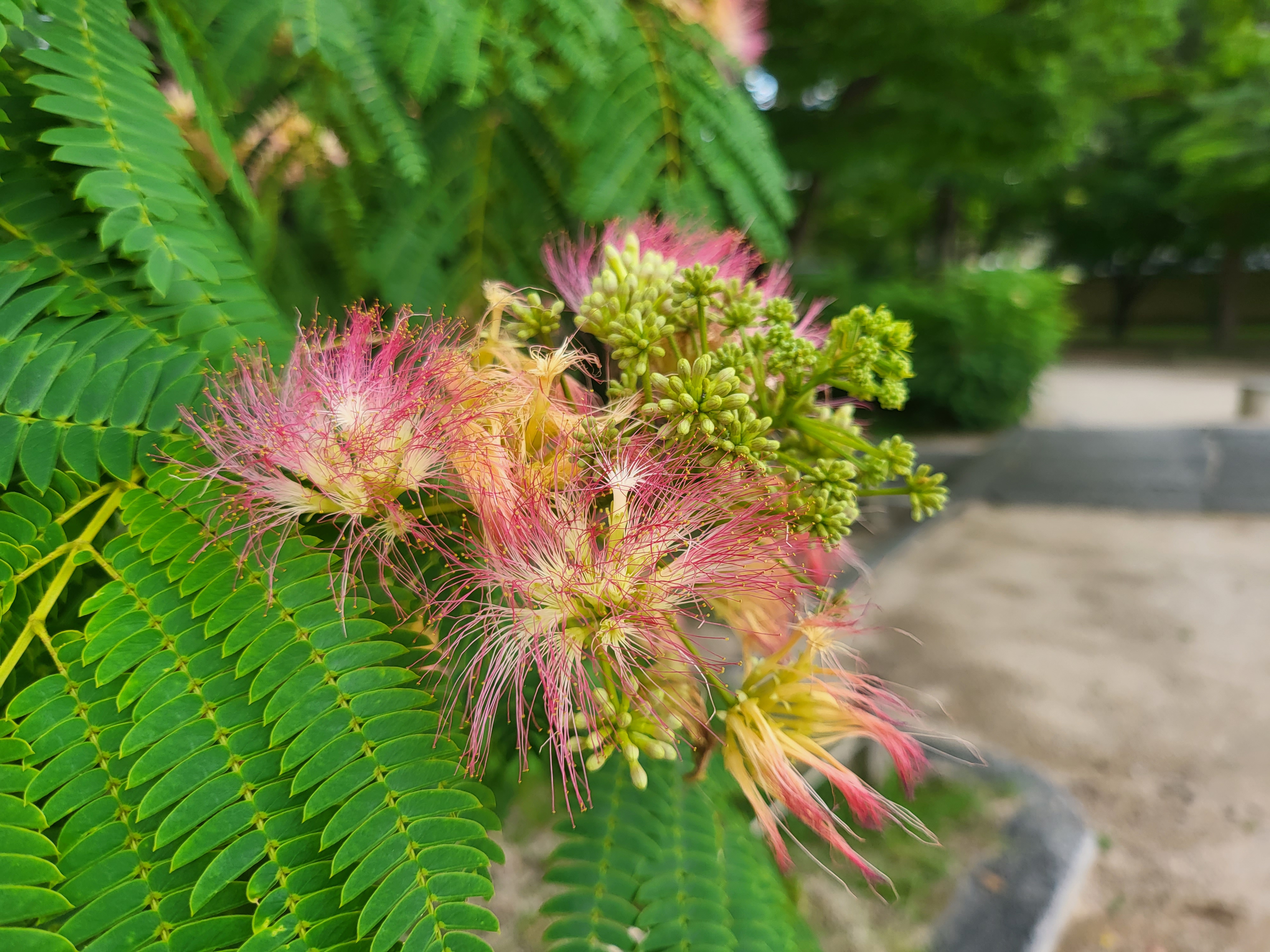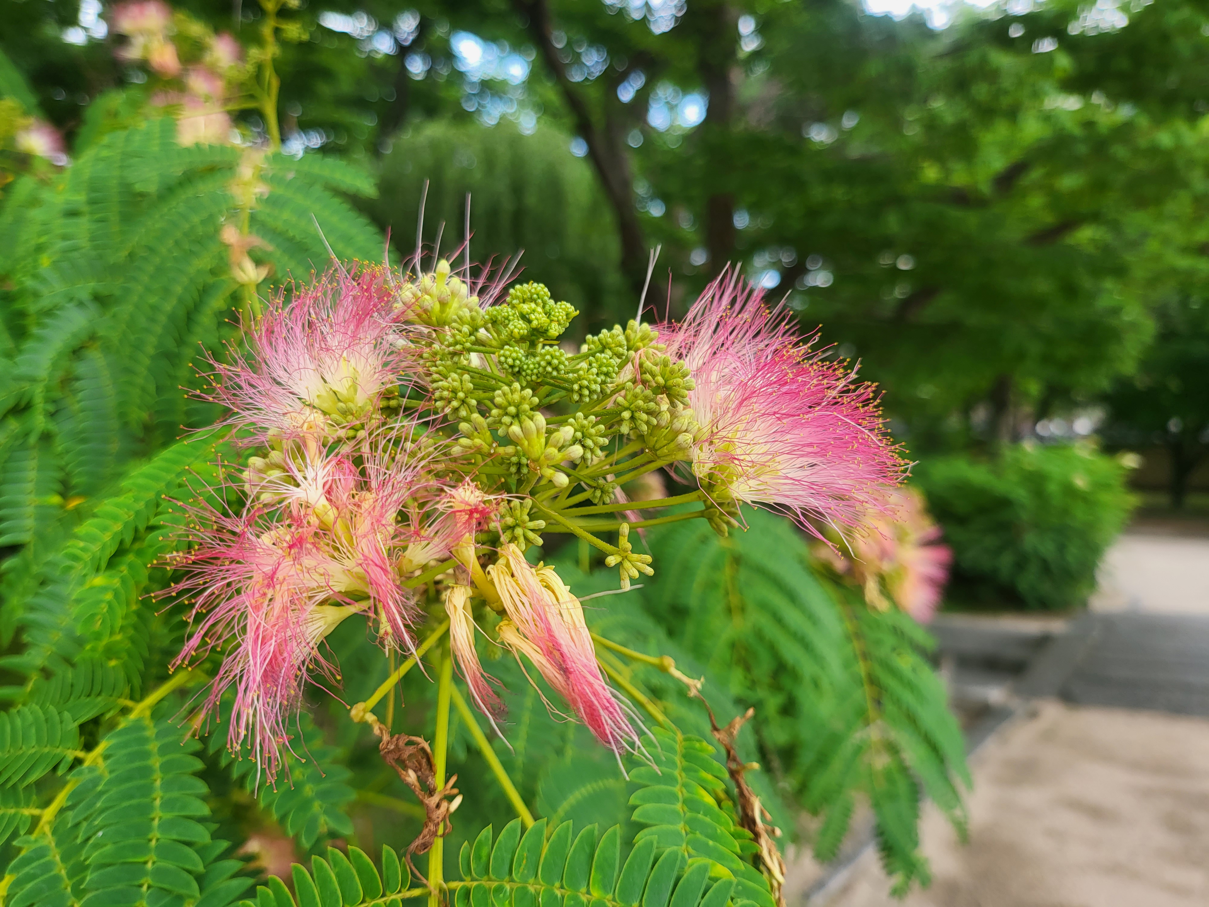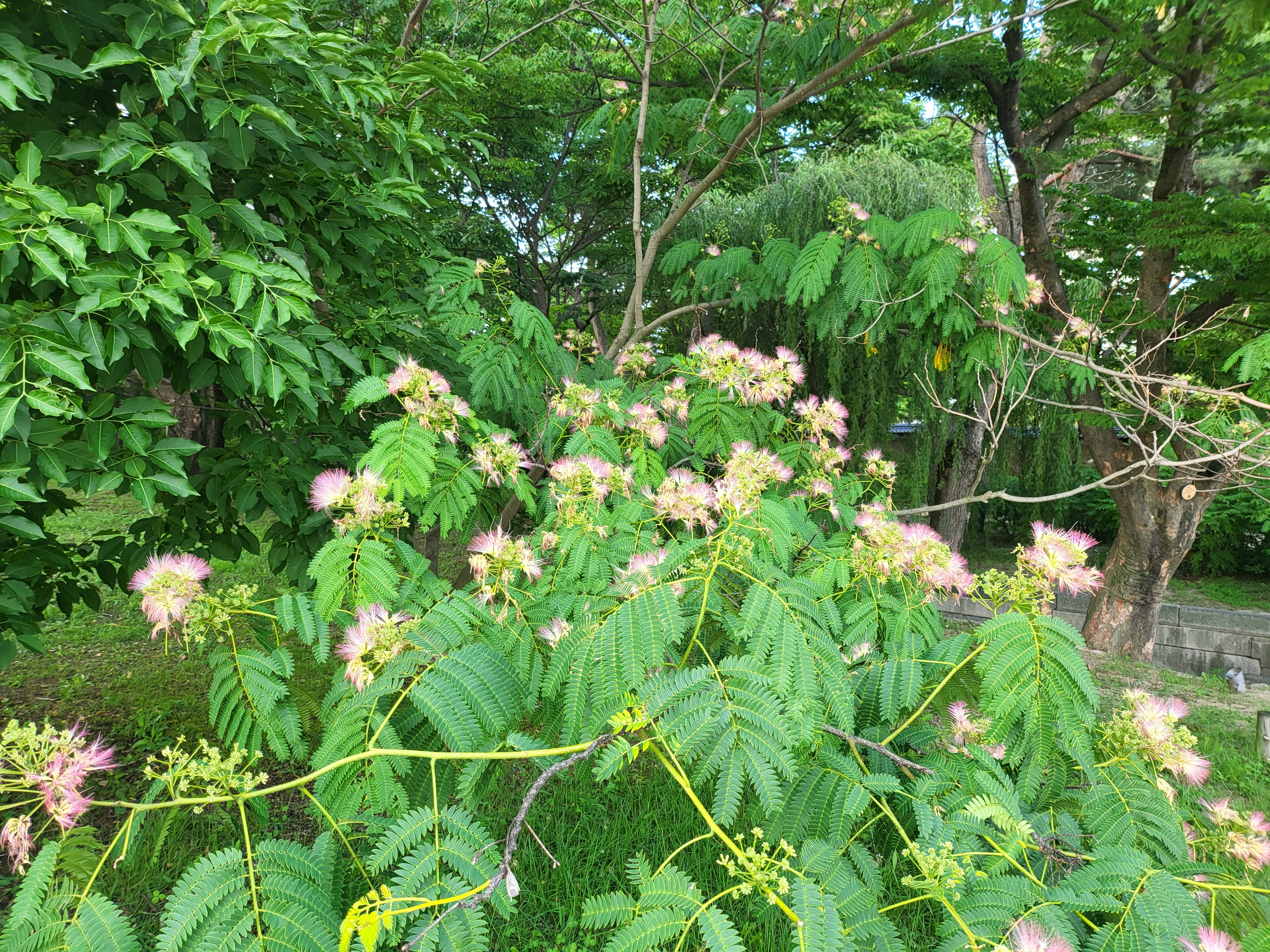 더 친숙한 말로는 Persian silk tree 혹은 pink silk tree라 한다는데 비단나무라는 그 표현이 그 속성, 특히 그 꽃술 특징을 잘 드러낸 것이 아닌가 하며, 페르시아는 아마도 그쪽에서 집중 자생하는 까닭에 그리 부르지 않나 하지만 보다시피 이건 한반도를 포함한 동북아에도 흔하게 자생한다.