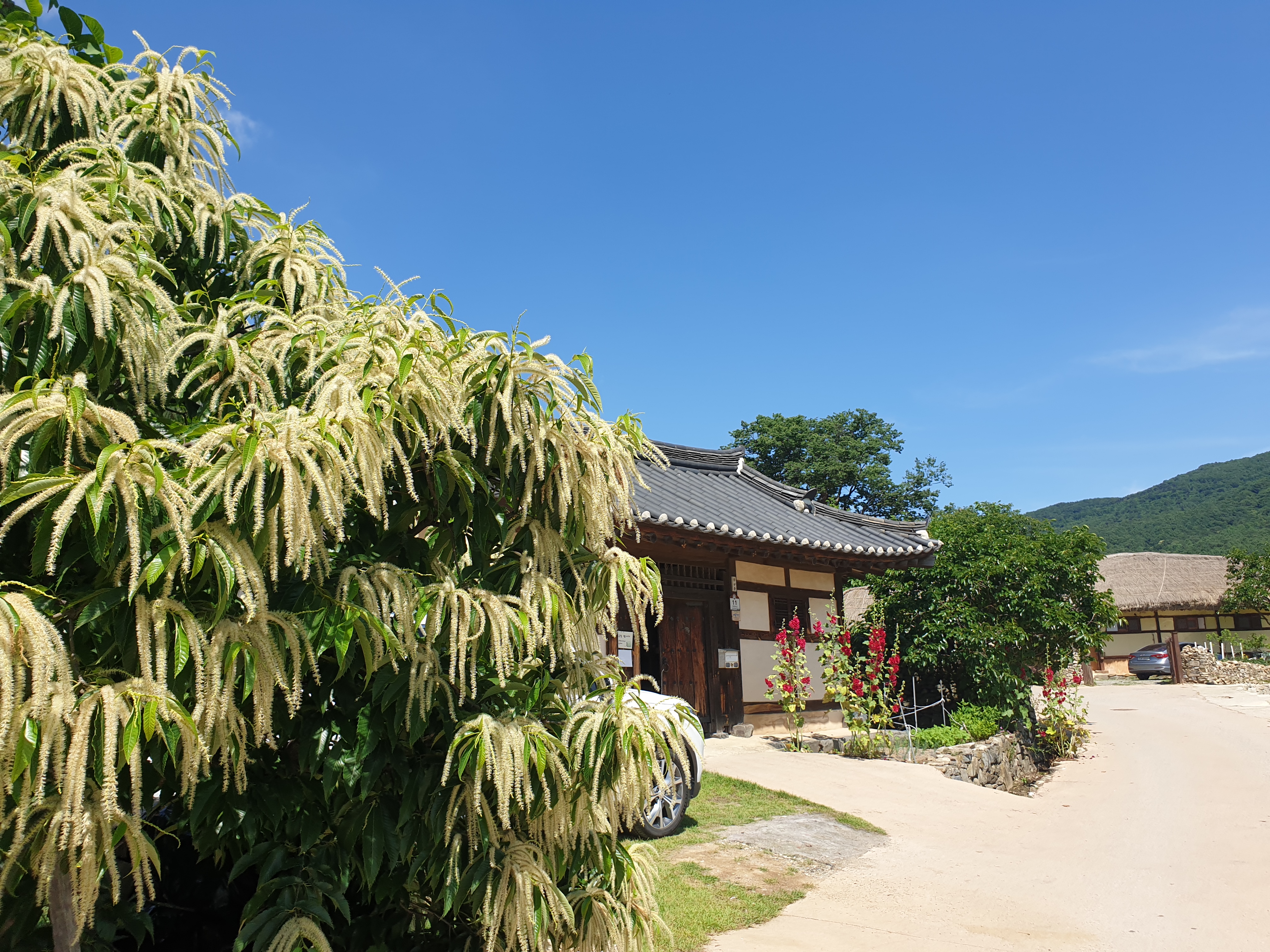 아산 외암마을 밤나무도 꽃이 한창이라 더버 죽다 계우 생환했다.