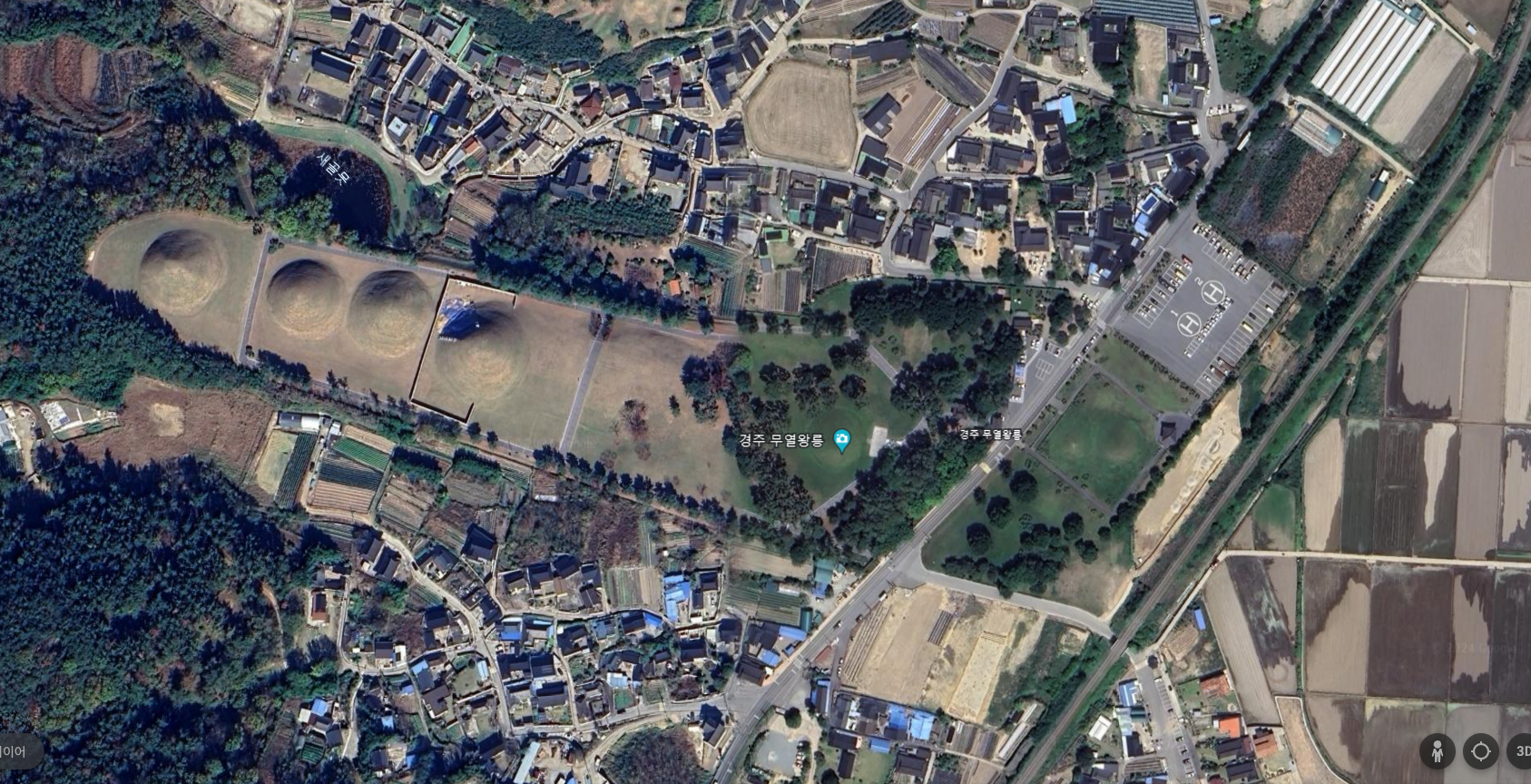 구글어스로 우리한테 익숙한 동서남북 방향 맞추어 내려꽂아본 경주 서악고분군이다.