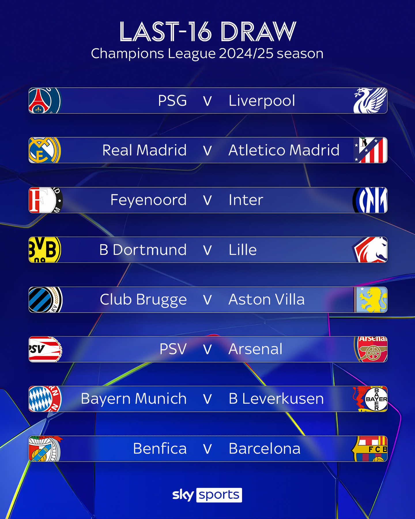 24-25시즌 UEFA 챔피언스리그 16강 대진 추첨이 있었다.