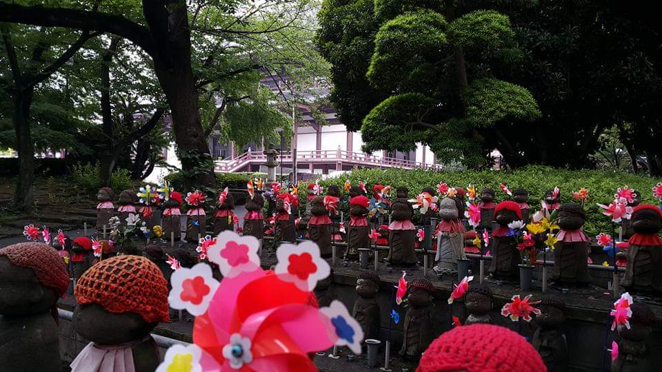 지장地藏을 선택한 이유는 지장보살이 아이들을 지키는 신으로 신앙되어 왔기 때문이다. 그래서 장식도 아이처럼 한다. 빵모자, 턱받이, 빨강 등등이 그래서 채택된 것이라 생각한다. 그래서 잘 살펴보면 이러한 지장보살 앞에는 아이들이 좋아하는 과자를 바친 것이 많다.