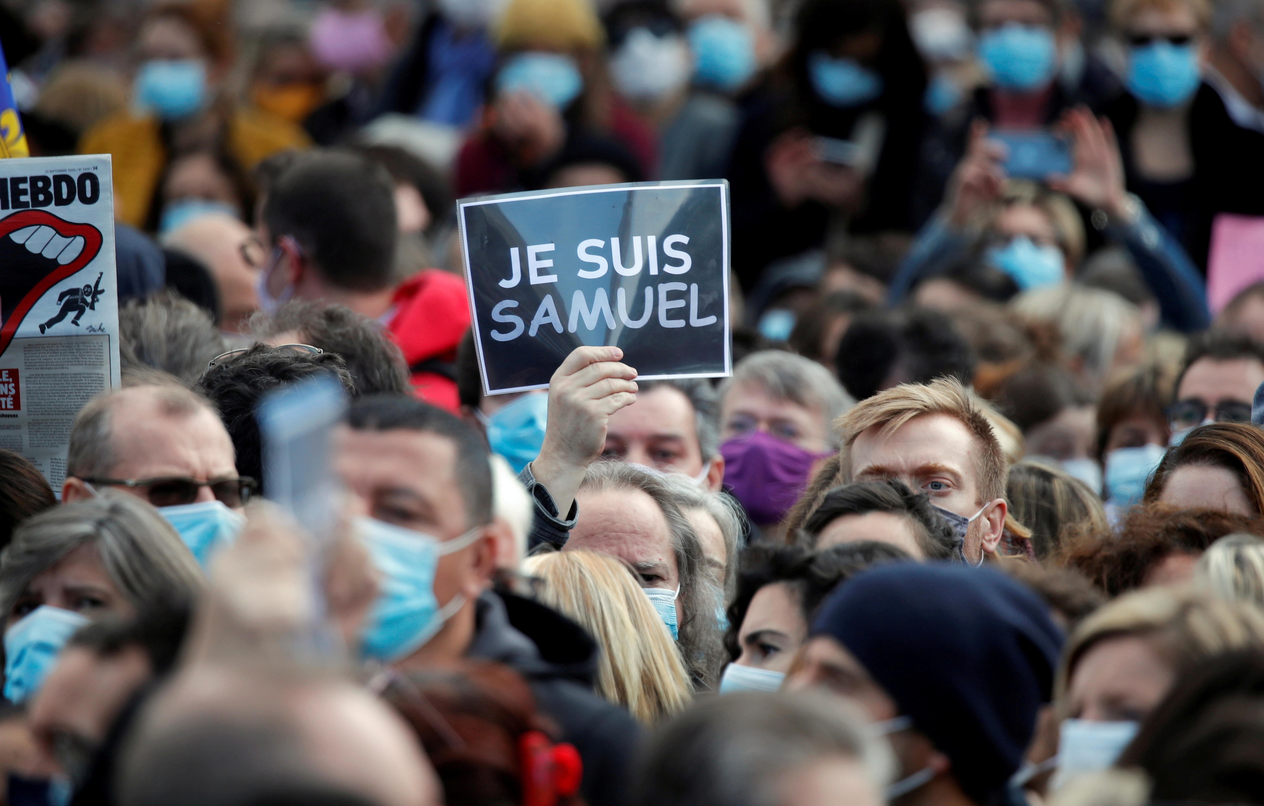 "우리는 두렵지 않다"…참수 교사 기리며 광장에 모인 프랑스인