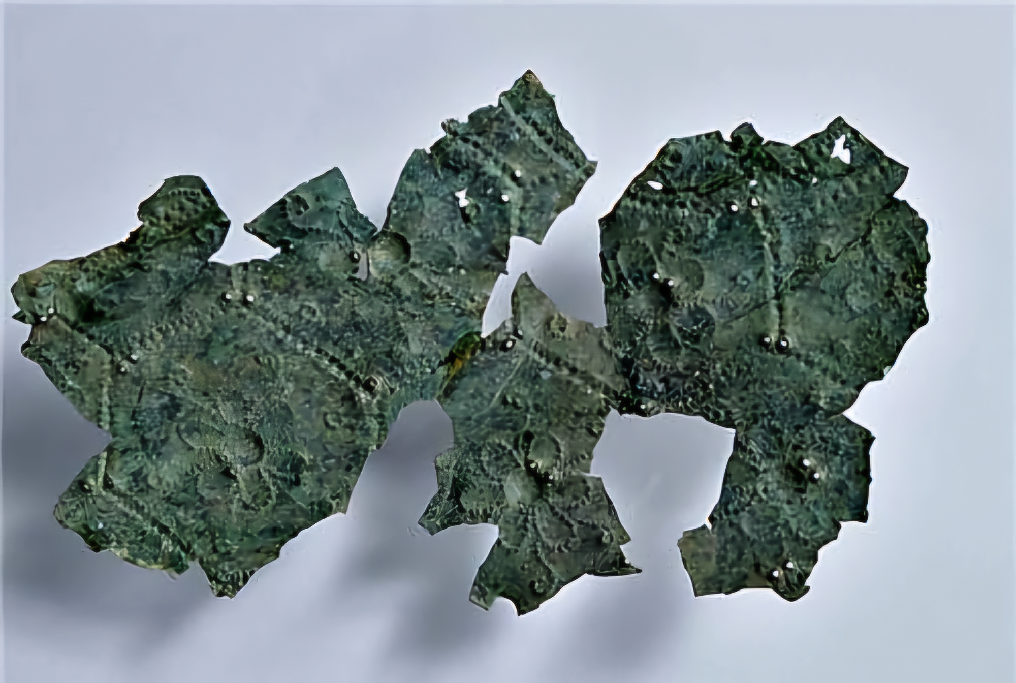 그에서는 출입구 쌓인 흙(아마 도굴 과정에서 쌓였거나 그에 따른 결과일 것이다)에서 육각형에 꽃무늬를 새긴 금동판 쪼가리가 드러났다.
