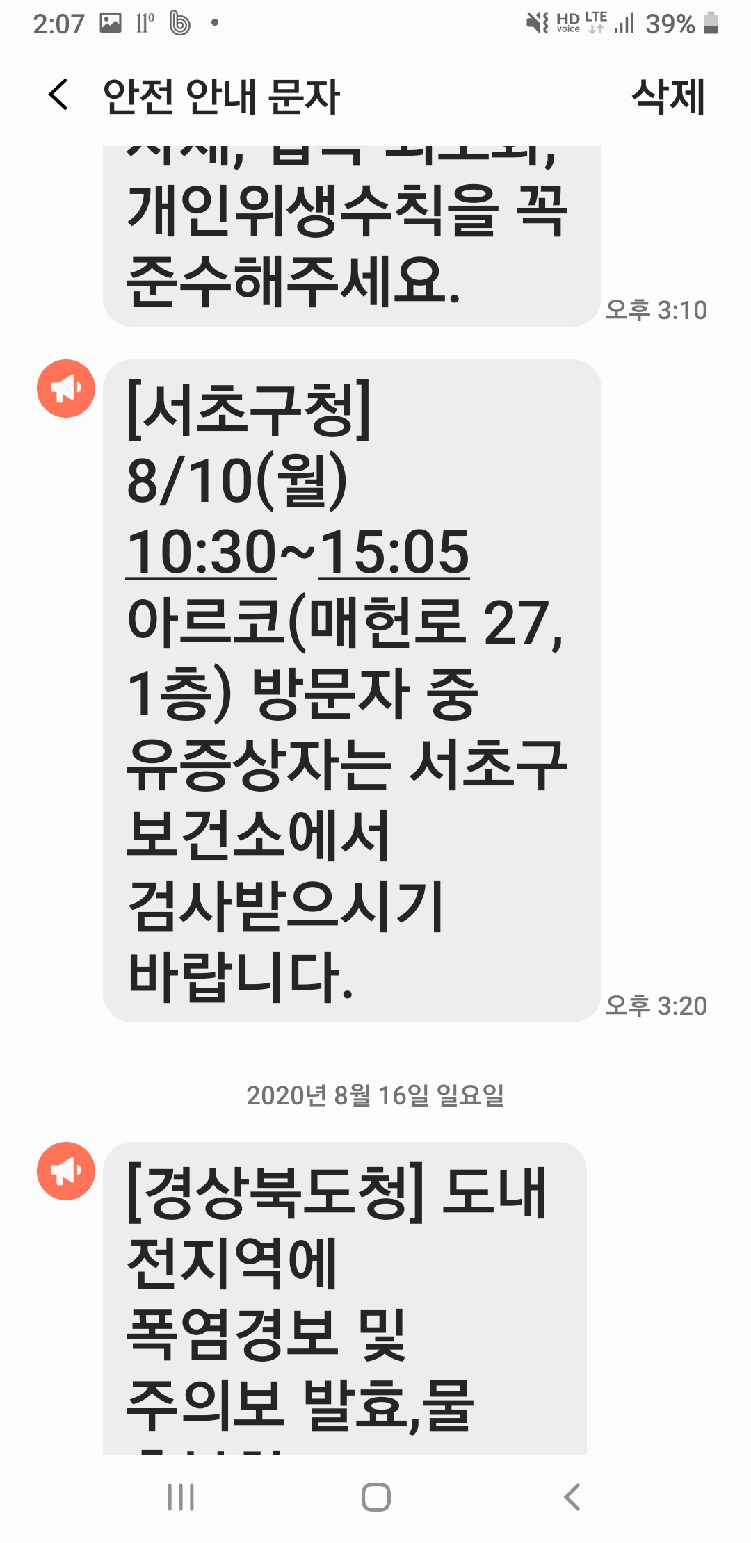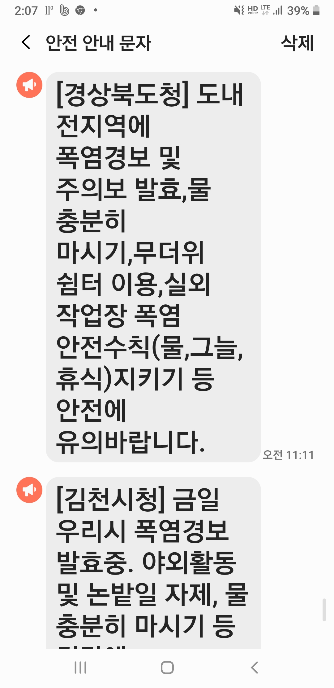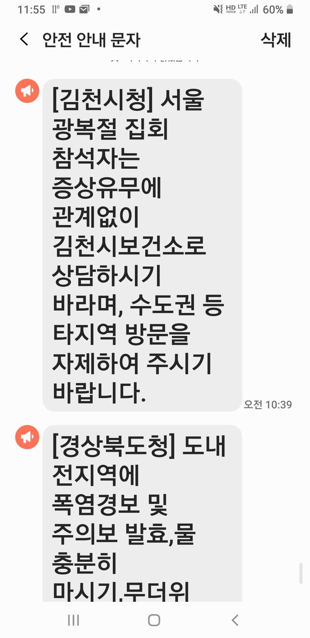 어제 김천에 내려왔는데 귀신처럼 알고 김천시청이랑 경북도에서 친절하게도 이런 메시지들을 준다.