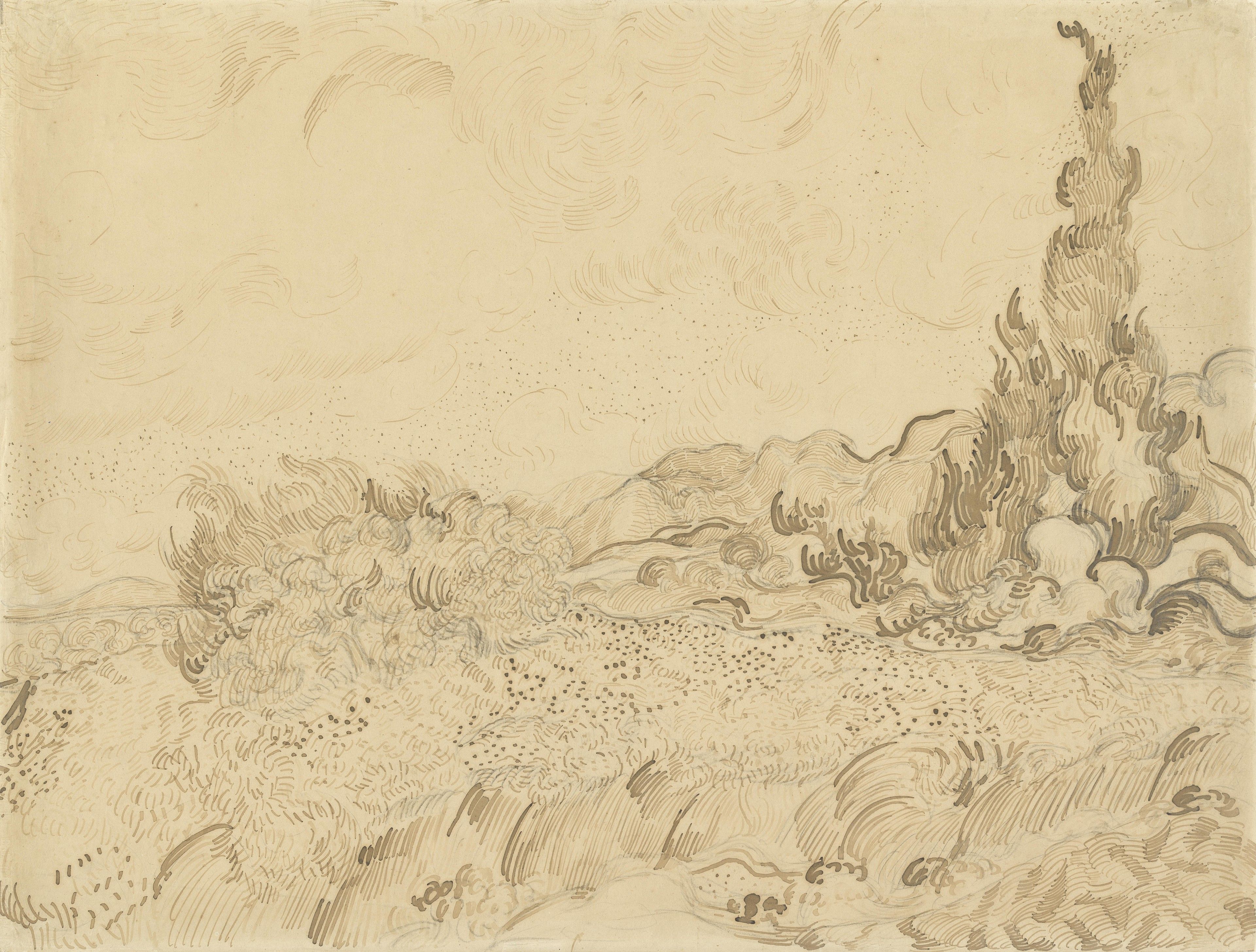그의 그런 그림들은 하나로 특화해서 Wheat Field with Cypresses 라는 표제어로 위키피디아에 별도 항목으로 독립했으니 그걸 소장처별로 보면 다음과 같다.