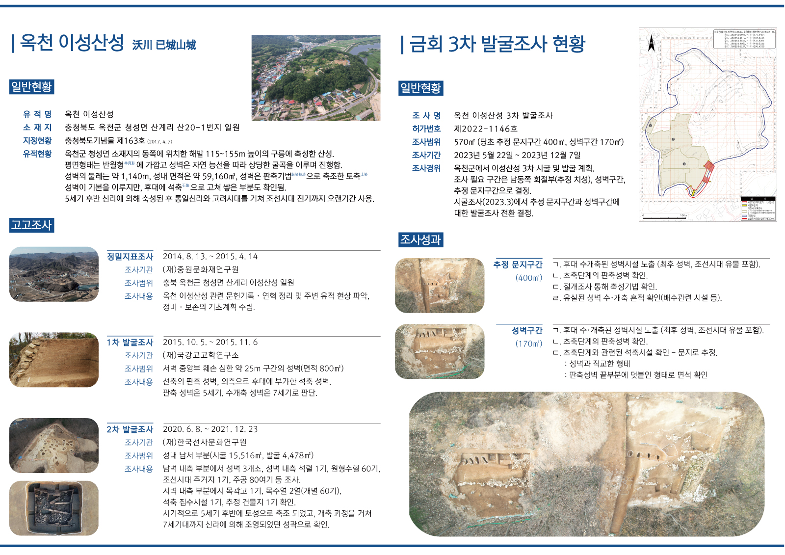 옥천 이성산성 올해 2023년도 제3차 발굴조사 성과는 아래에서 간략히 요점만 추려 제공했거니와