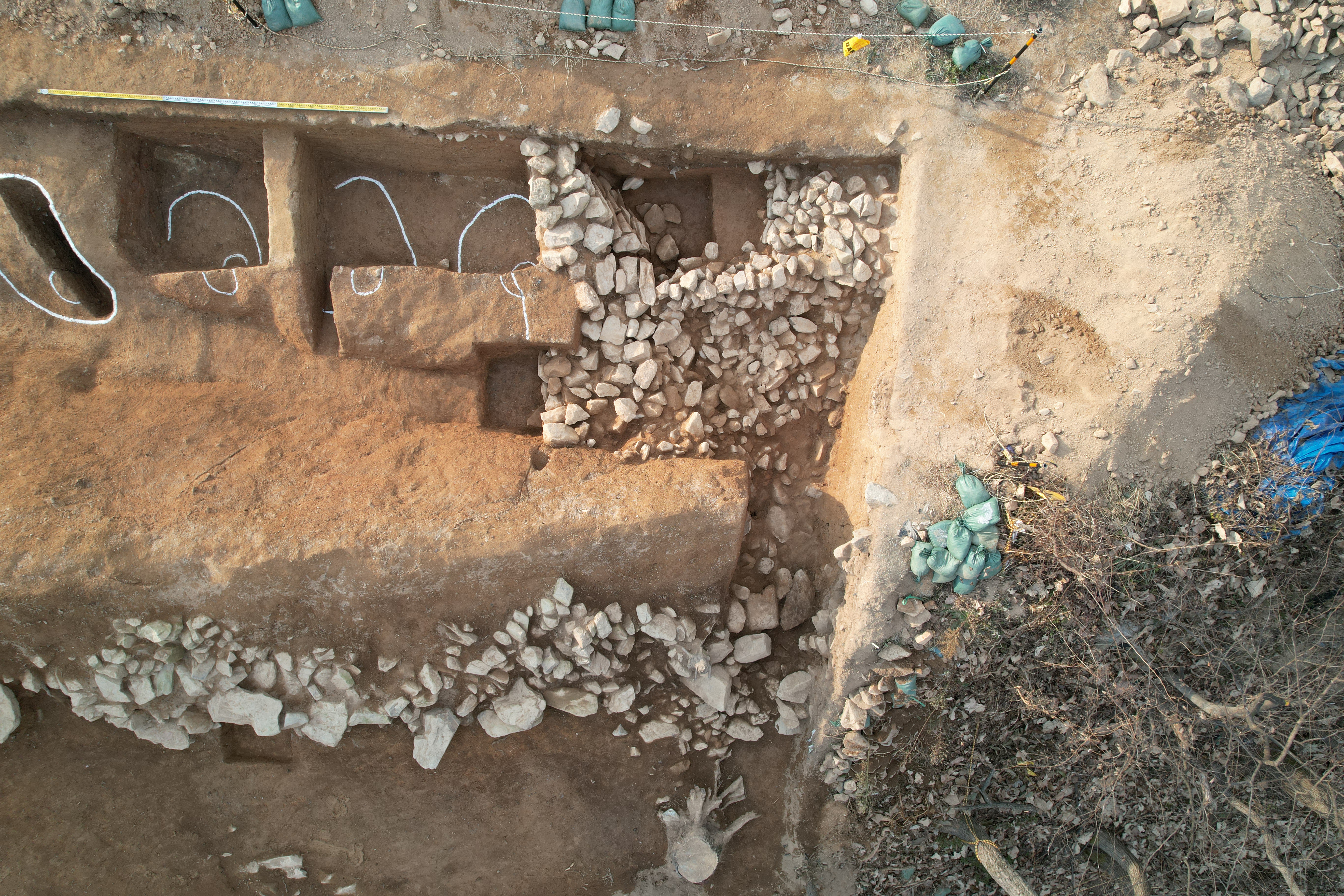 2. 성벽을 직교하게 관통하는 석축시설 확인 - 문지로 추정