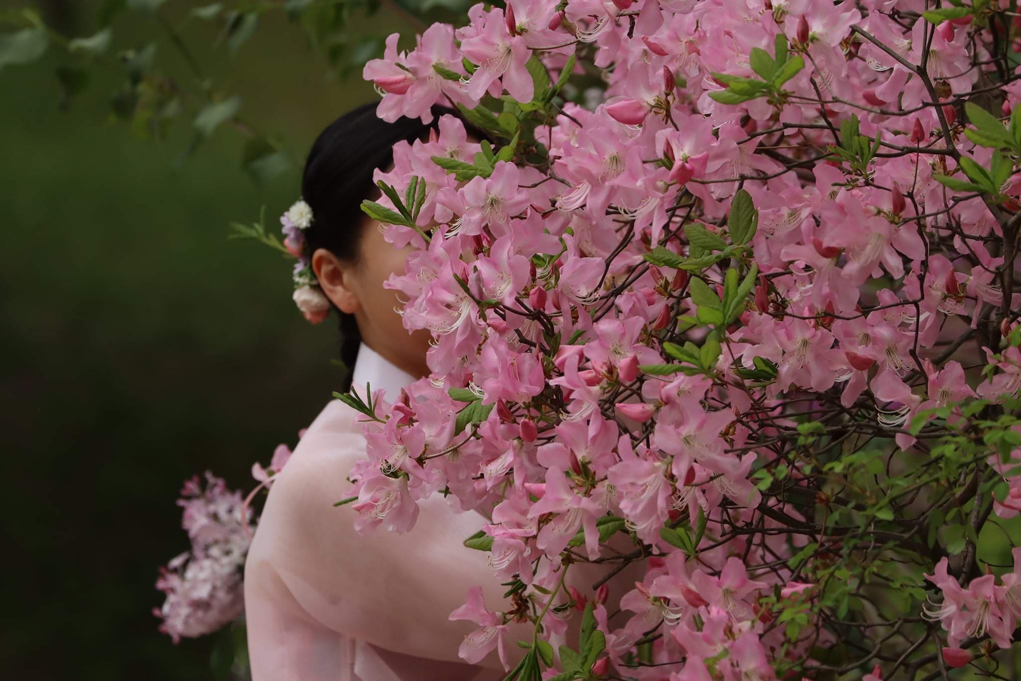 봄꽃은 참말로 한복과 절묘하게 조화해서 이 정도면 괜찮다 싶다 해서 망원으로 당겨 촬영한 것인데 결국 나만 간직하는 사진이 되고 말았다.