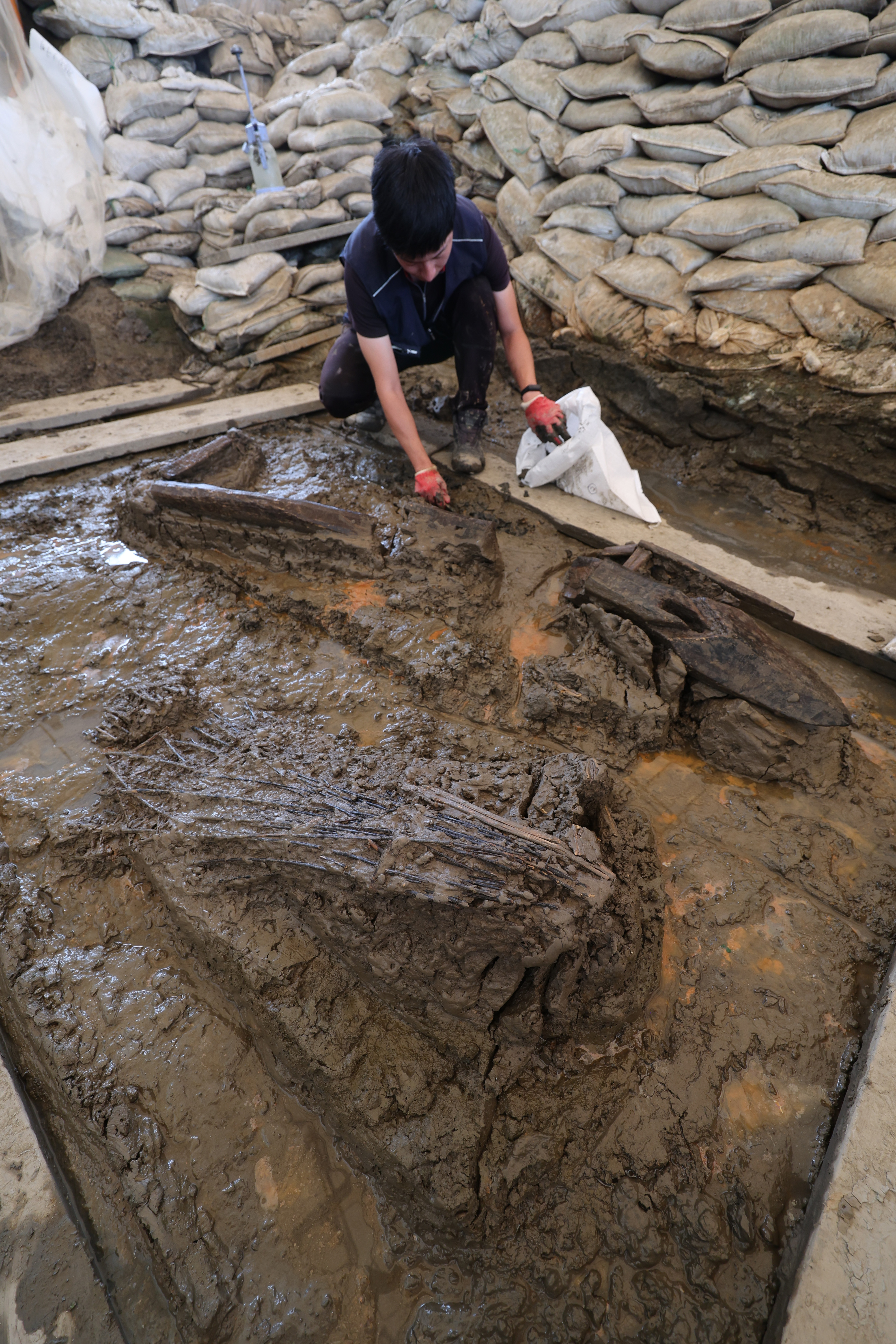 목제 유물이 왜 천오백년이나 버텼는지는 뻘흙이라는 환경이 설명해 준다.