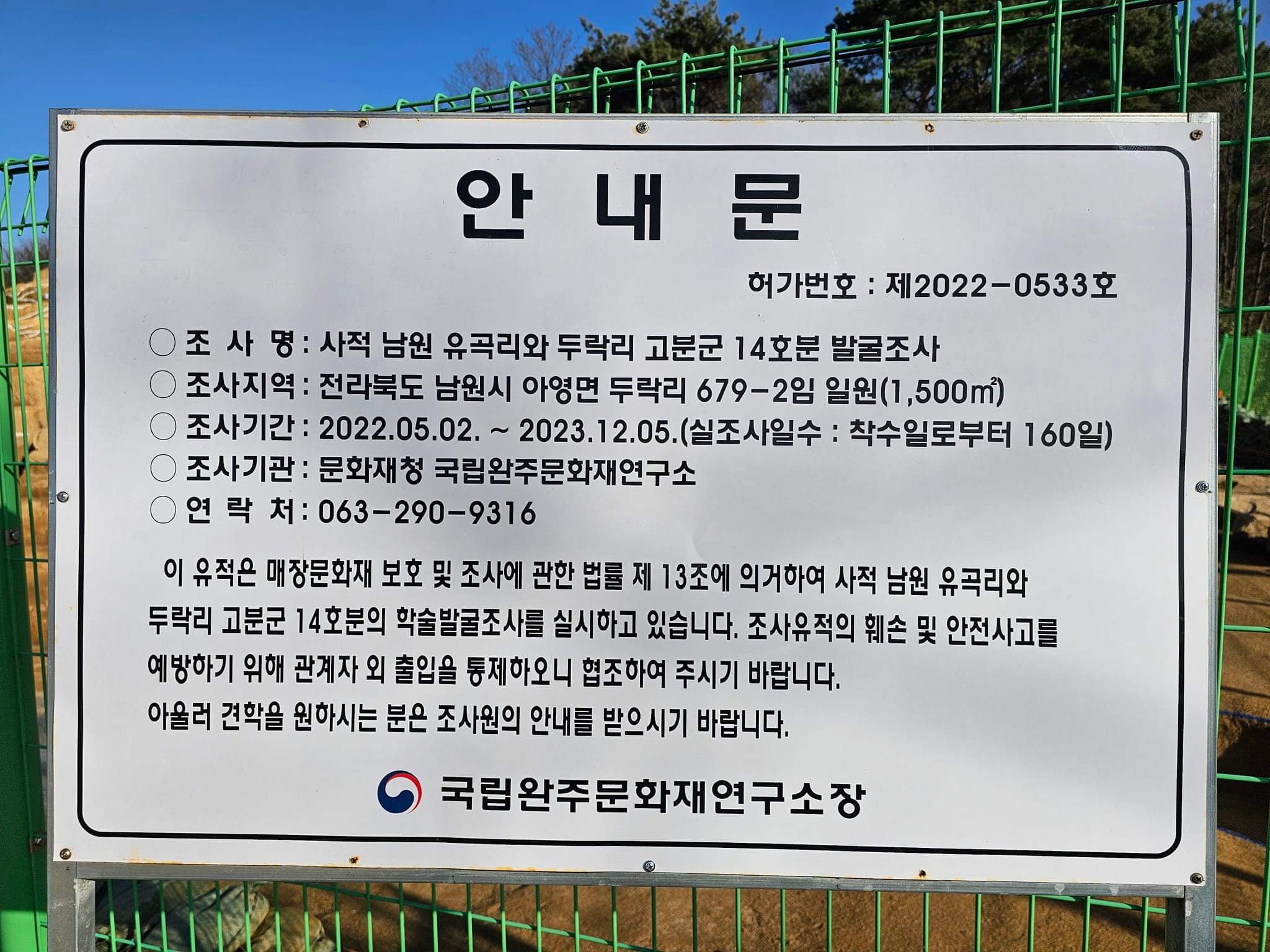 by 김태식 THE HERITAGE TRIBUNE ts1406@naver.com 국립완주문화재연구소가 가야고분군이라는 이름으로 세계유산에 등재된 '남원 유곡리와 두락리 고분군' 소재 삼국시대 무덤인 14호분을 까디비고 그 조사