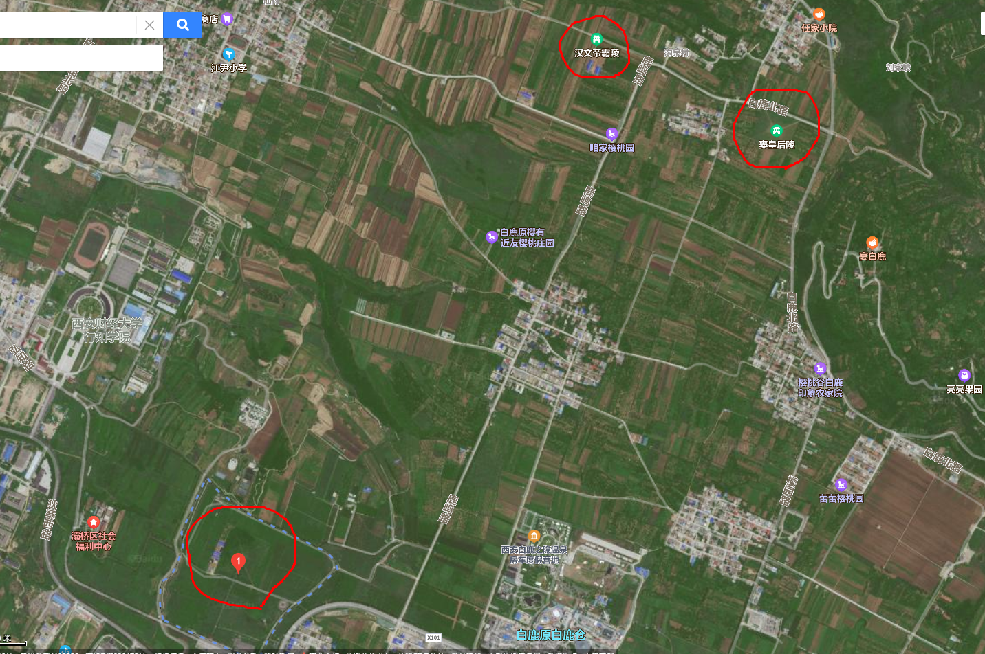 <바이두위성 사진을 통해 검색한 박태후릉薄太后陵>