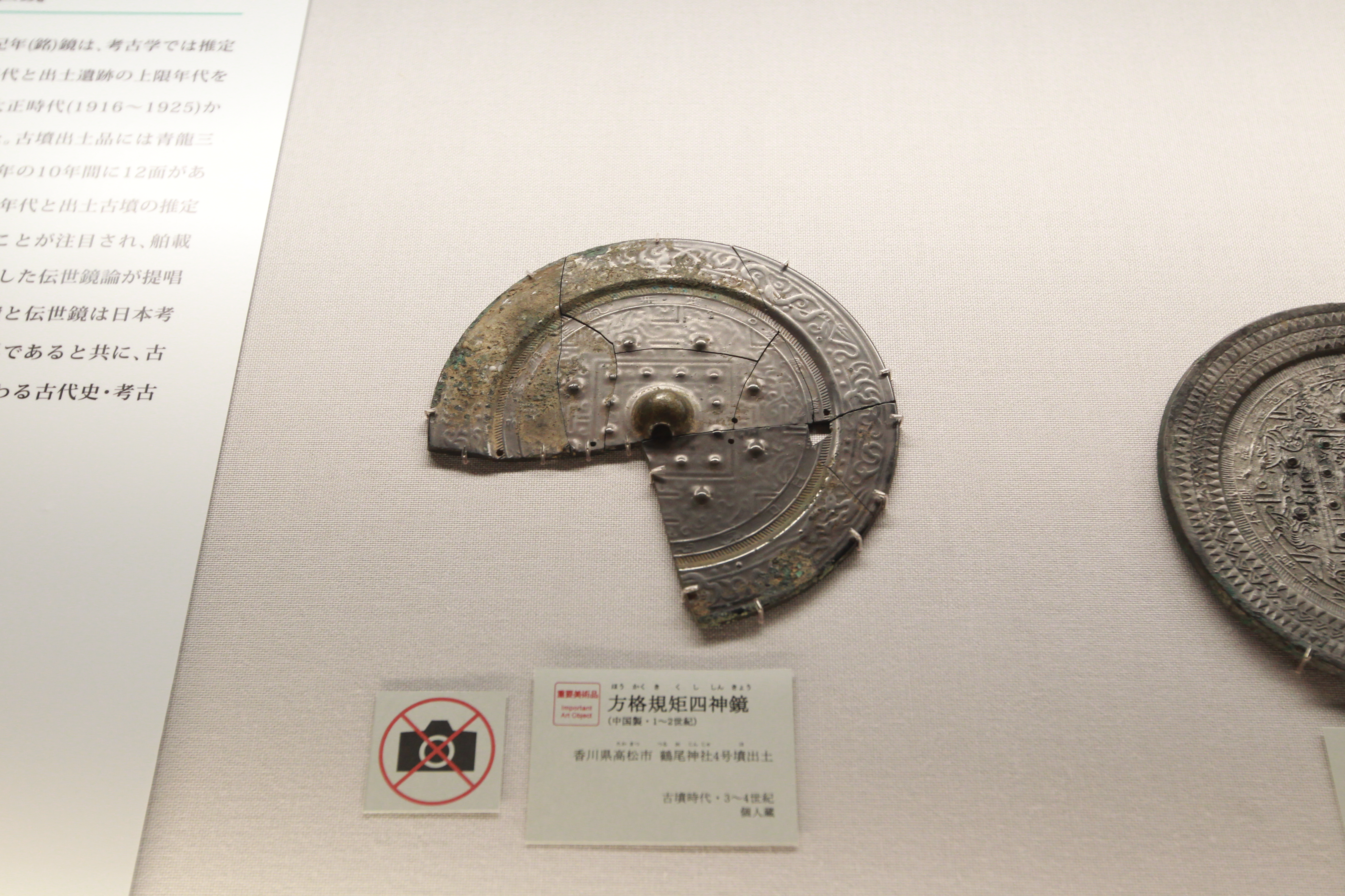 이런 거울, 특히 테두리를 저리 삼각형으로 뾰죽하게 만든 거울은 아직 한반도나 중국 대륙에서는 출토례가 없다. 중국산이라 하지만, 중국산임이 확실한 이상, 저런 것들이 일본에서는 다량으로 출토하는 이상 이 점이 수상하기 짝이 없다.