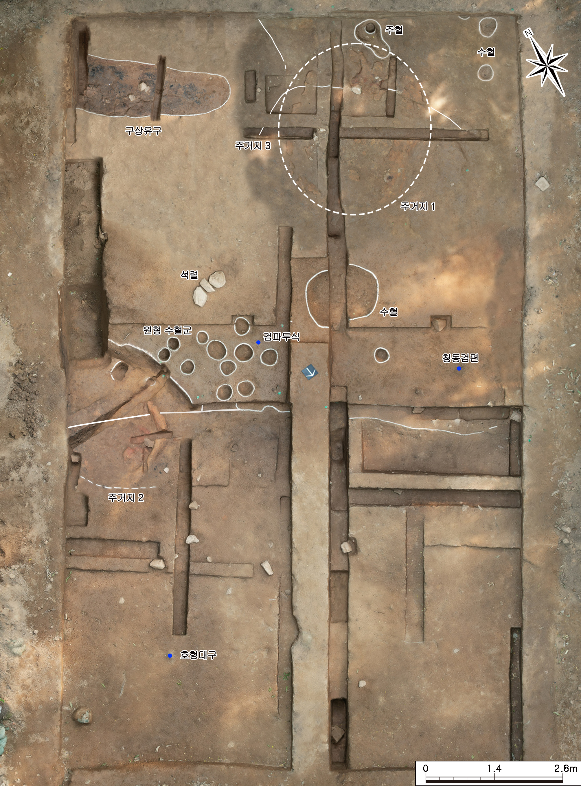조사과정에서 확인된 호형대구, 검자루끝장식 등의 청동유물은 주로 당대 수장층 분묘나 의례 관련 유구에서 확인되는 것이며 층위 양상에서 확인되는 특징 등은 제사가 이루어진 공간을 둘러싸는 환구環溝의 흔적일 가능성이 있다.