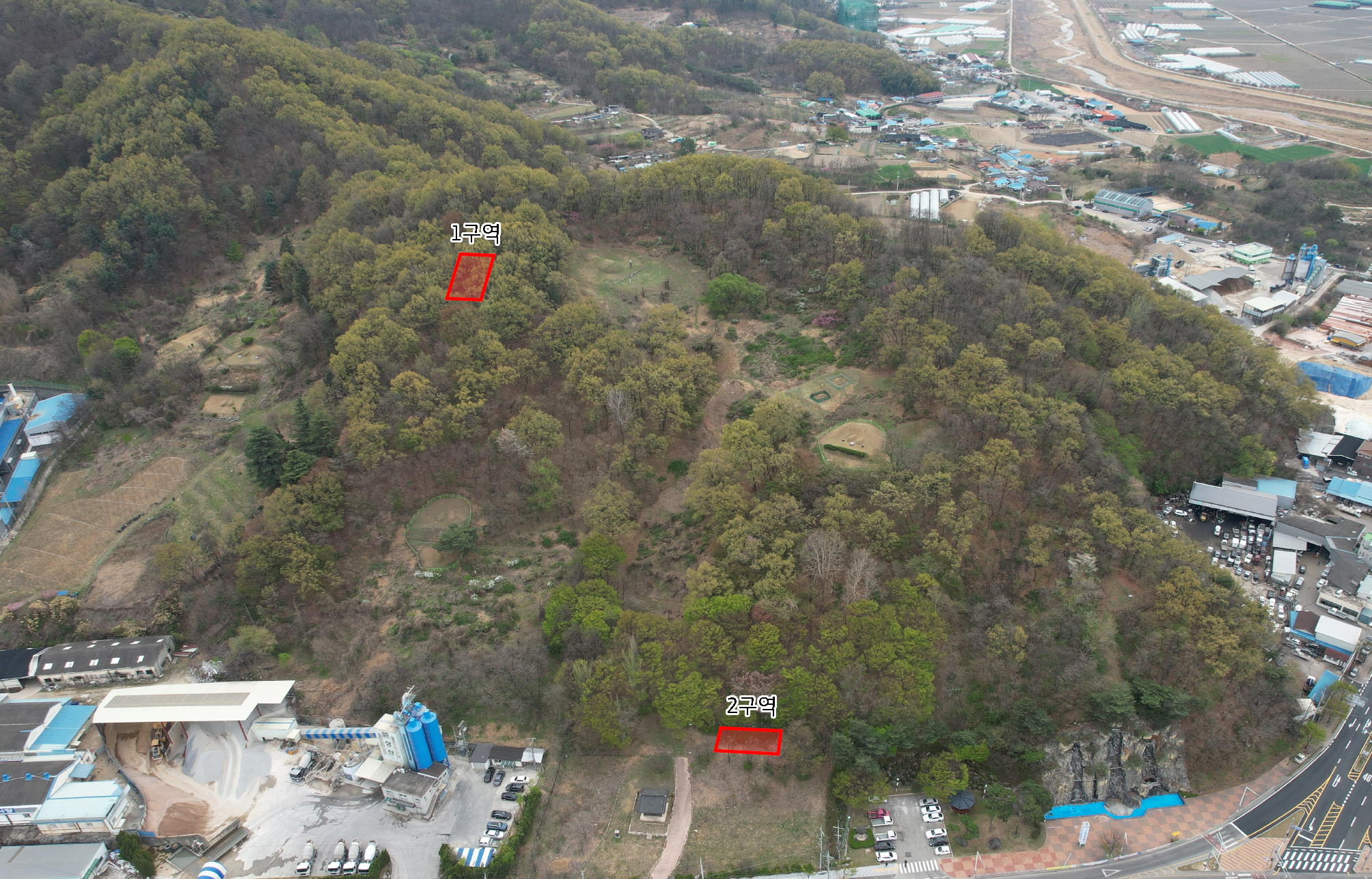 여기서는 구릉 위 완만한 사면부를 1구역(면적: 132㎡), 산록 말단을 2구역(면적: 91㎡)이라 명명한다.