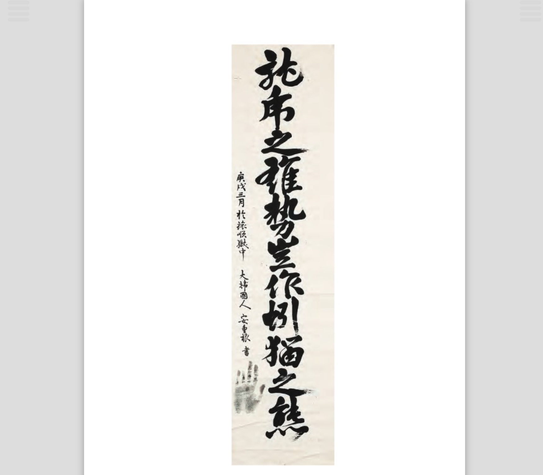 안중근 유묵이 경매에 출품되었다는 소식이 들린 까닭에 오늘 하루종일 여기저기서 연락이 왔다. 요는 진위와 가격이 적당한지 묻는 것들이었는데 내게는 그보다 기존에 알려지지 않았던 내용의 작품이 등장했다는 것이 더욱 중요했다.