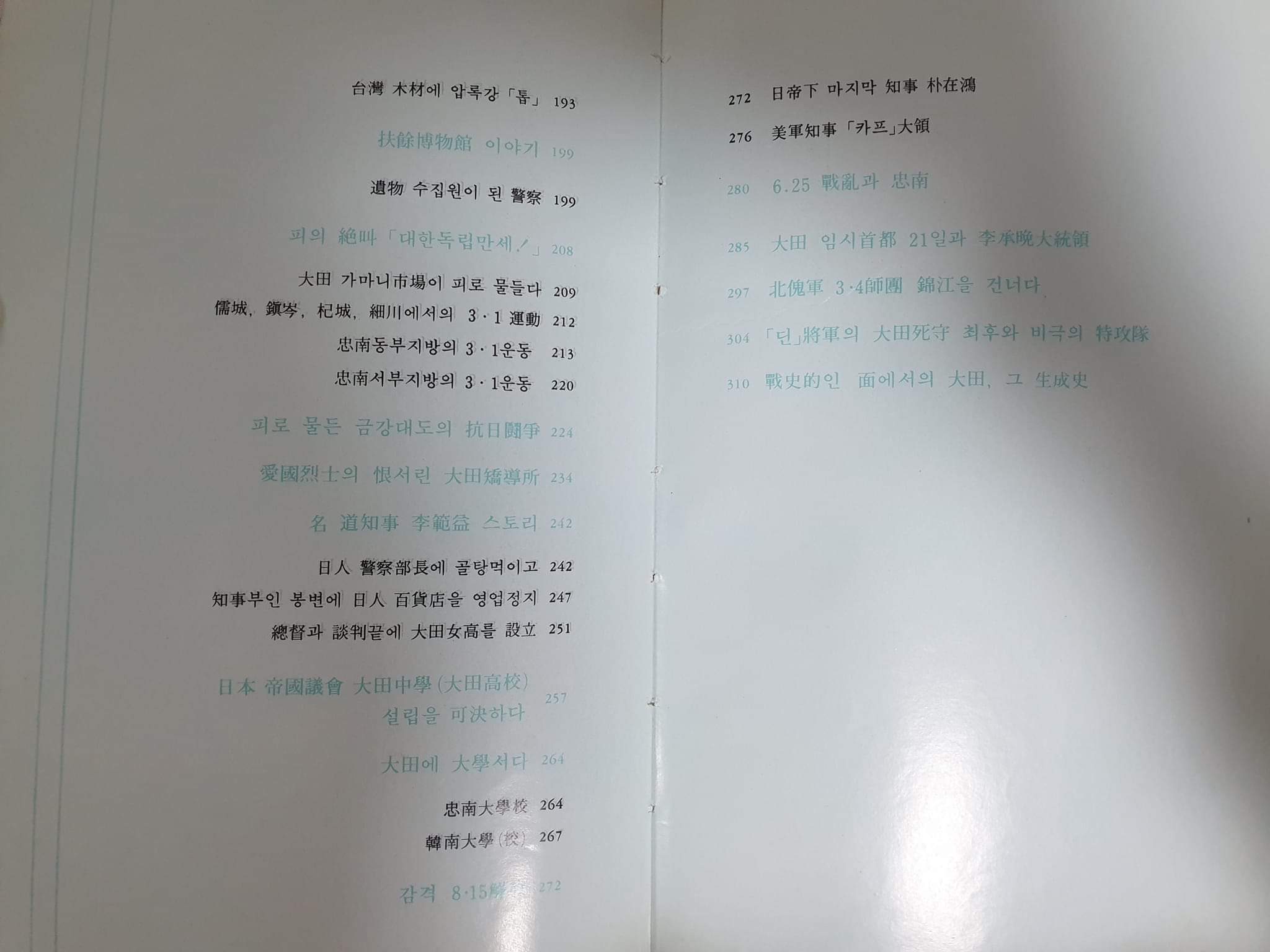 이 책은 75년도에 <대전일보>에 연재한 이야기를 엮어 83년에 발간했다. 부제 그대로 "구한말에서 6.25까지" 대전 충남 일대와 관련된 야화野話를 수집한 기록인데, 해방 후 30년밖에 안 된 시점이어서인지 일제강점기 시절 내용이 퍽 생생하다.