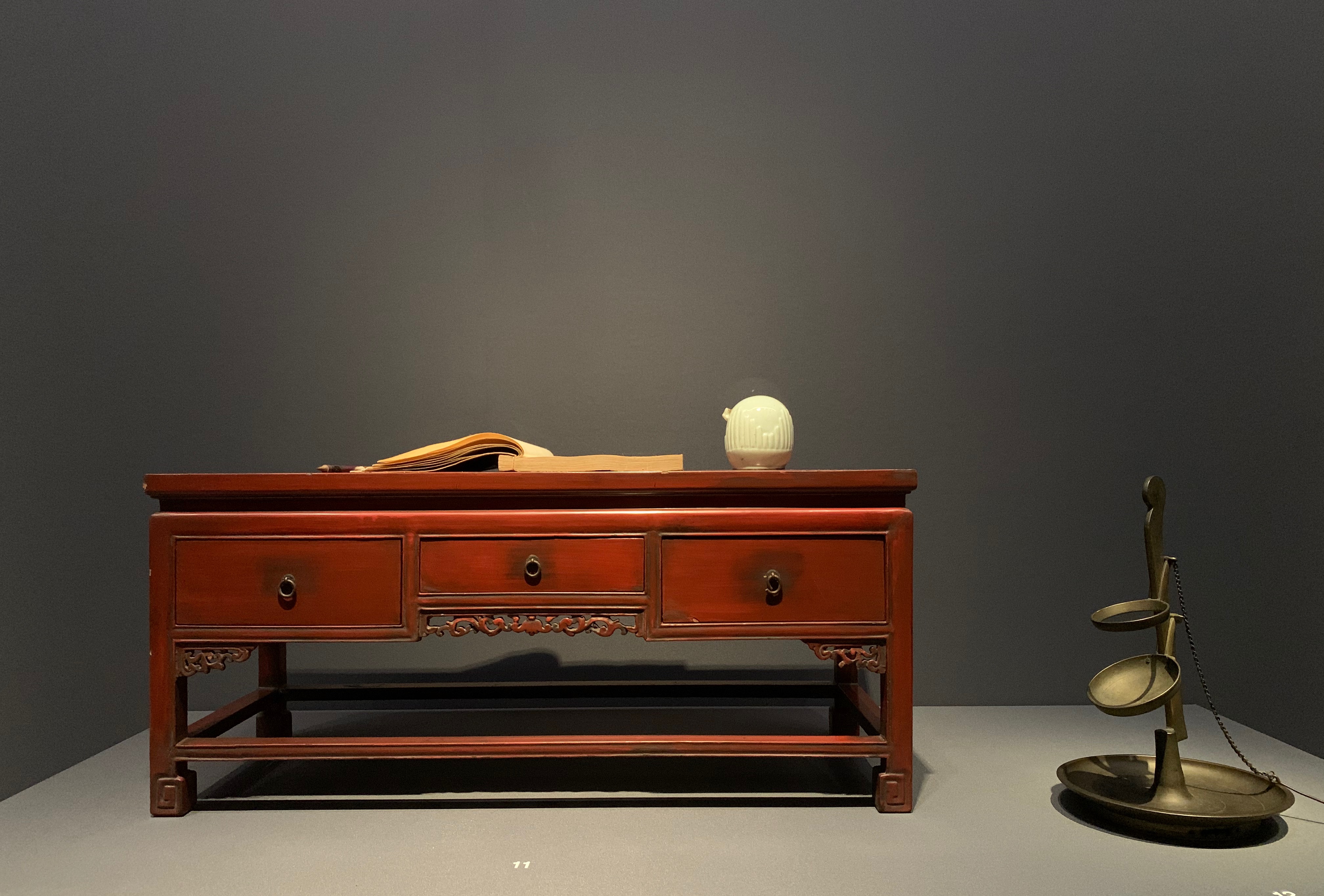 저는 붉은색 주칠을 한 서안 위에