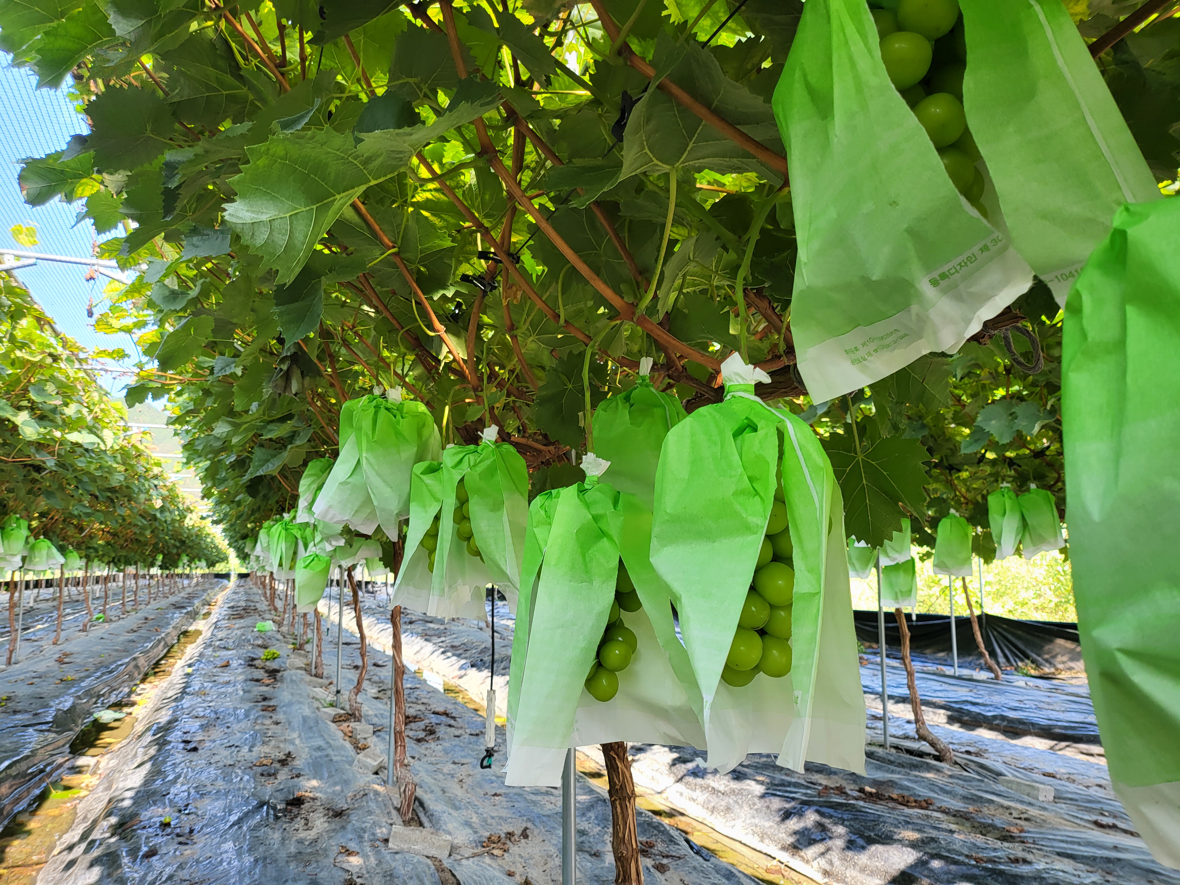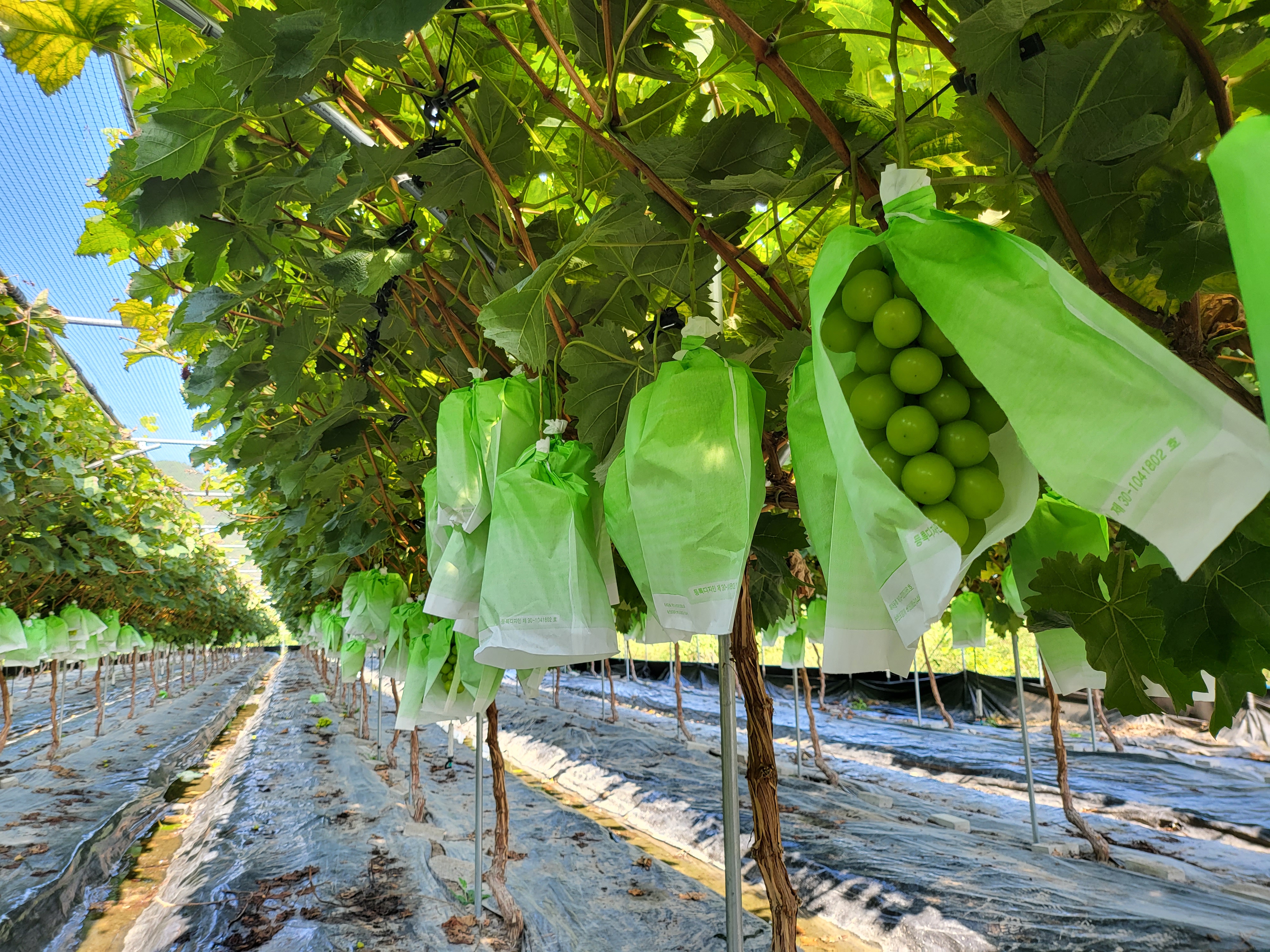 이 샤인머스캣 농장은 제대로 구경한 적이 없다가 등잔불 밑이 어둡다고 고향집 바로 앞 논이 그것이라 둘러봤다.