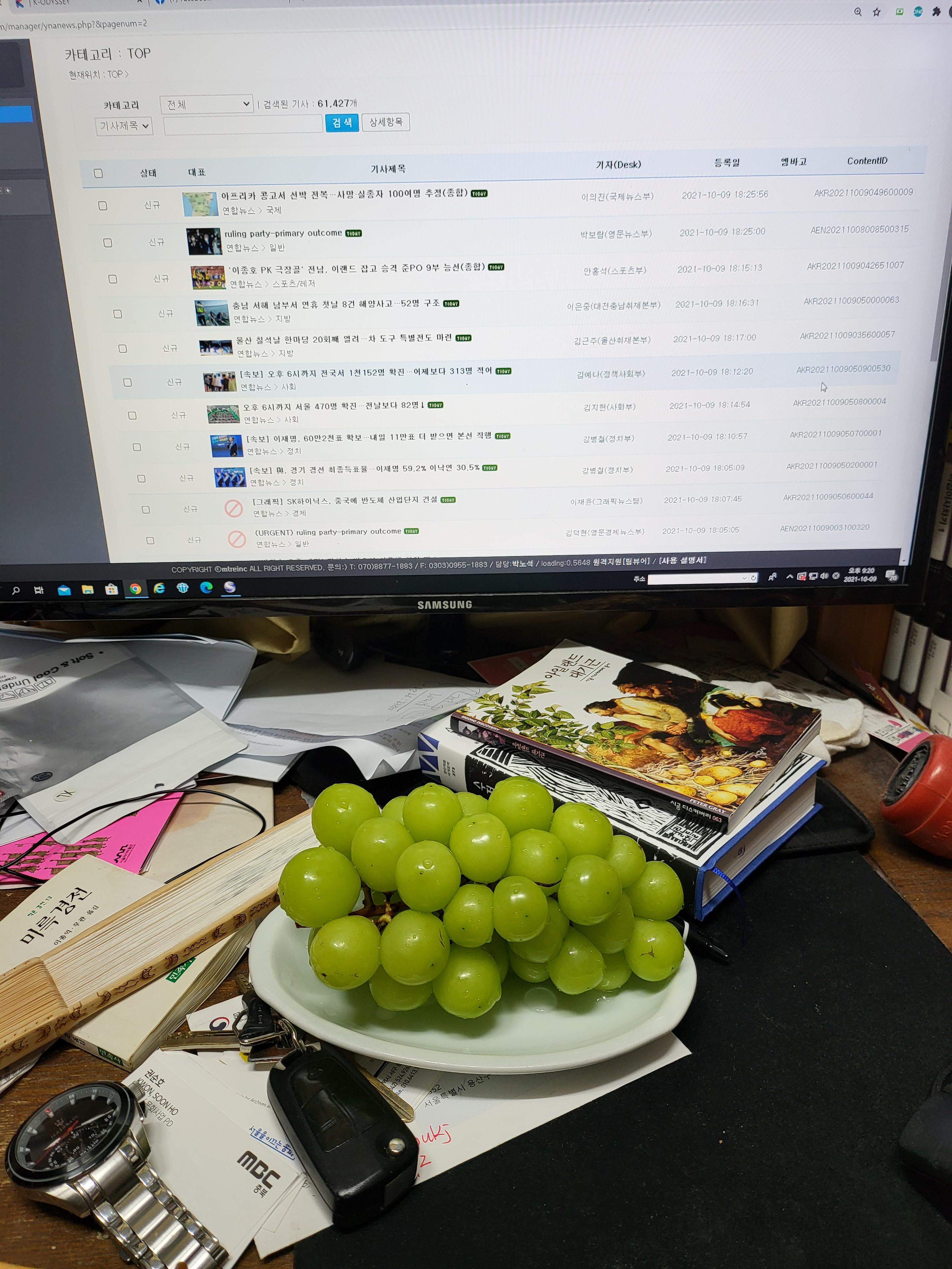 이런 일상이 마누라한테는 곱게 보일 리 만무하거니와 언제나 탱자탱자 노는 일로 비치기 마련이라 그래도 뭘 먹여야 생각했는지 샤인머스켓 한 송이 내어온다.