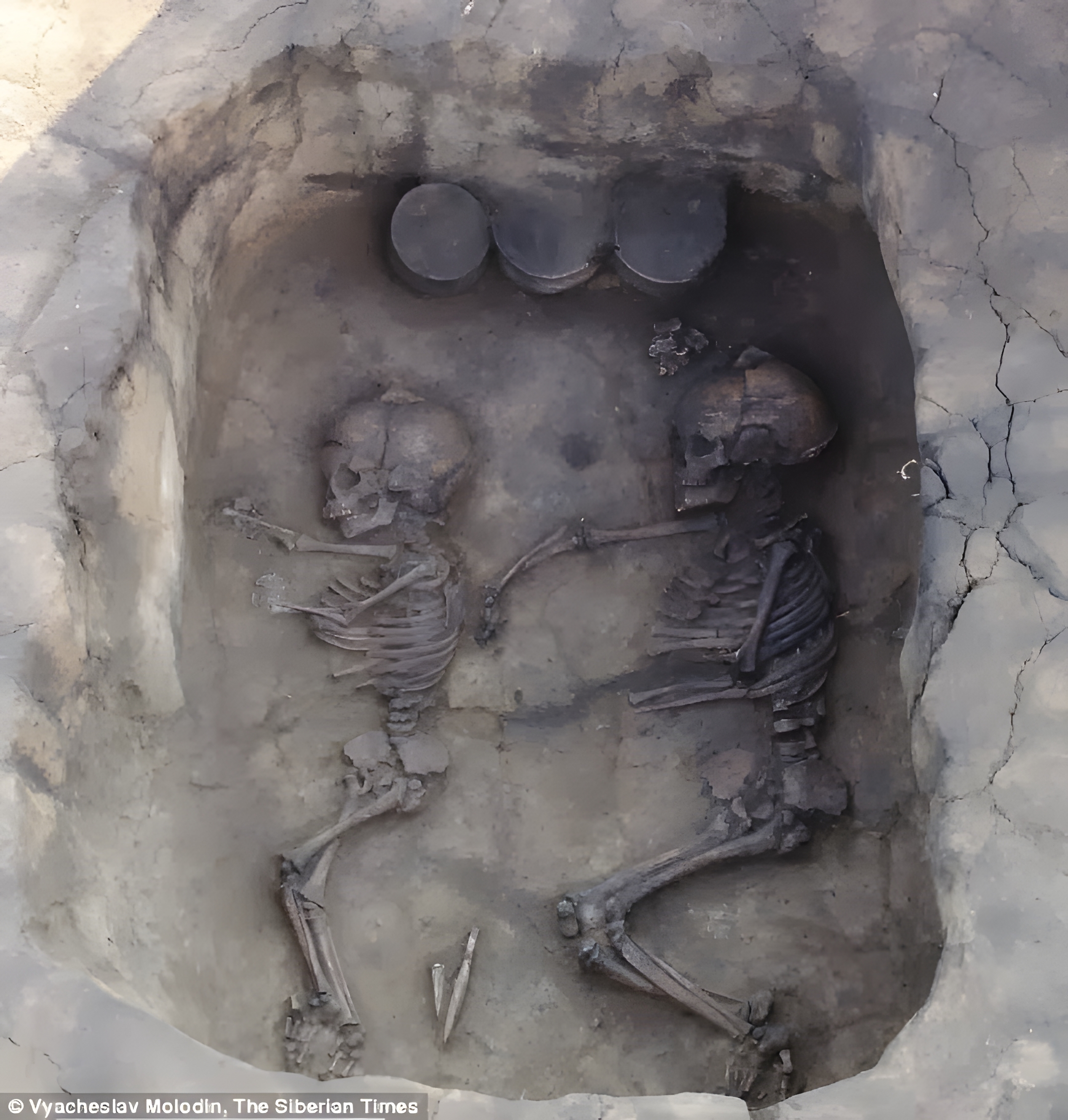2013년 어간에 언론을 통해 공개된 러시아 노보시비르스크Novosibirsk 지역 스타리 타르타스 Staryi Tartas 마을 청동기시대 묘지 발굴성과 한 장면이다.