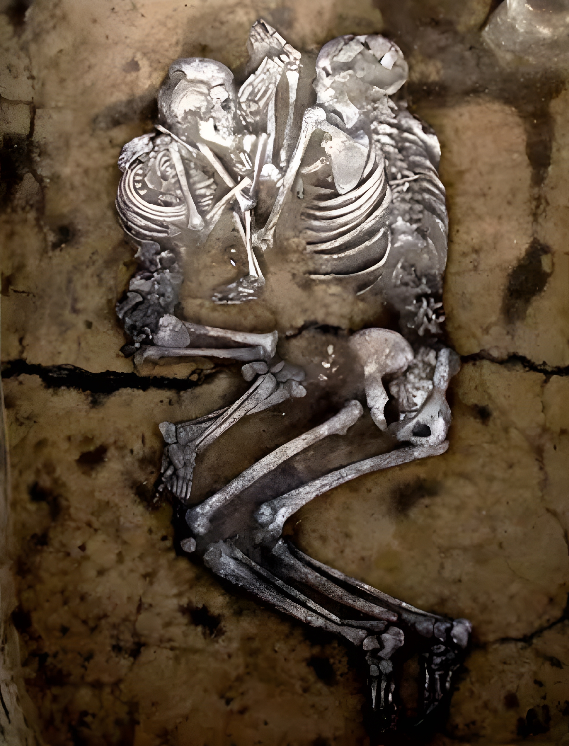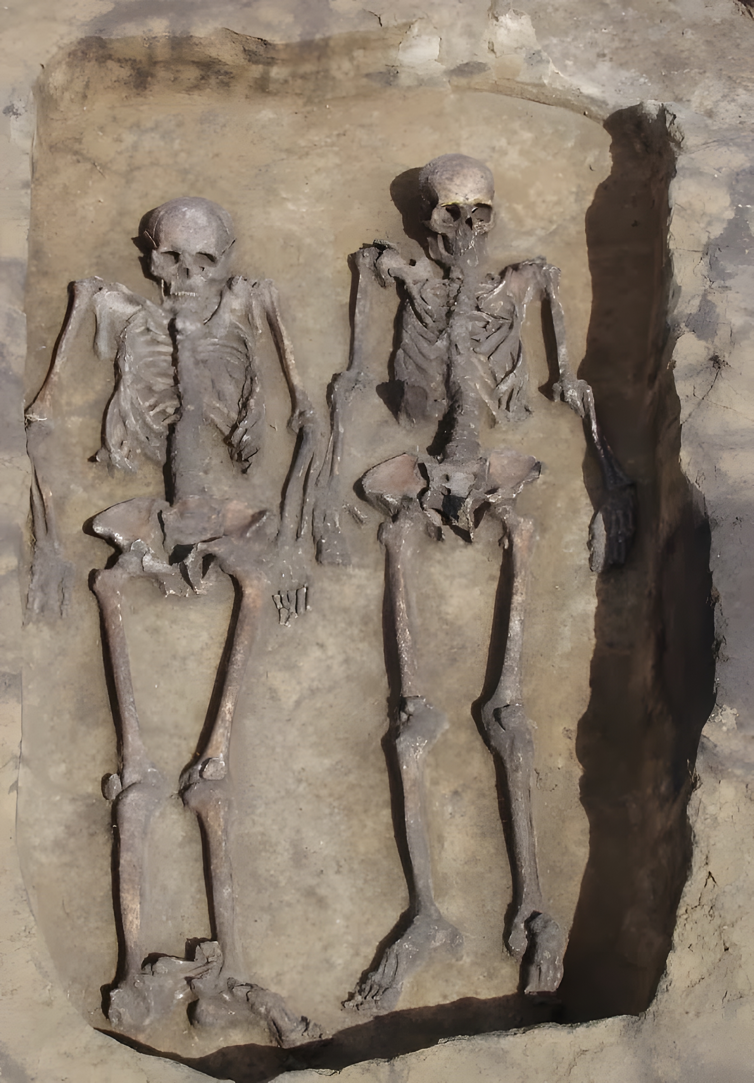 특이한 점은 개중 수십 개 무덤에서는 두 성인 유골이 껴안은 듯한 자세로 발견됐다는 사실이다.