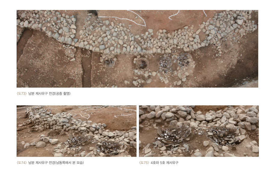 北与南域的护石外侧发现有使用大壶进行祭祀的痕迹, 并确认了大壶内部大部分为动物骨骼遗存。