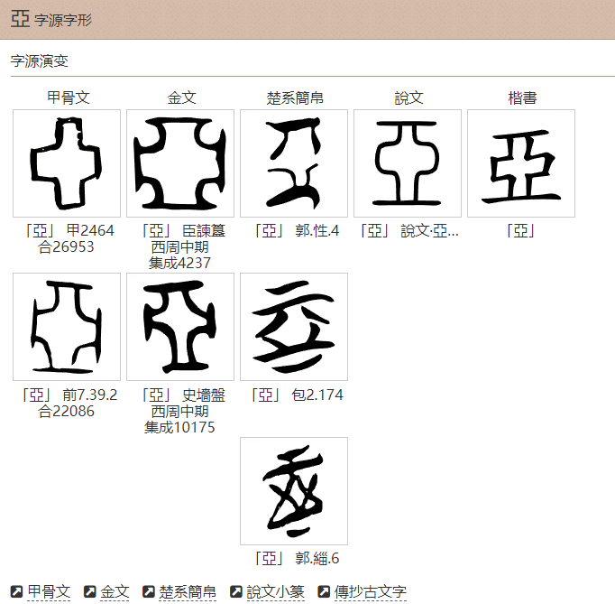 亞자형 실례를 보면 아래와 같다.