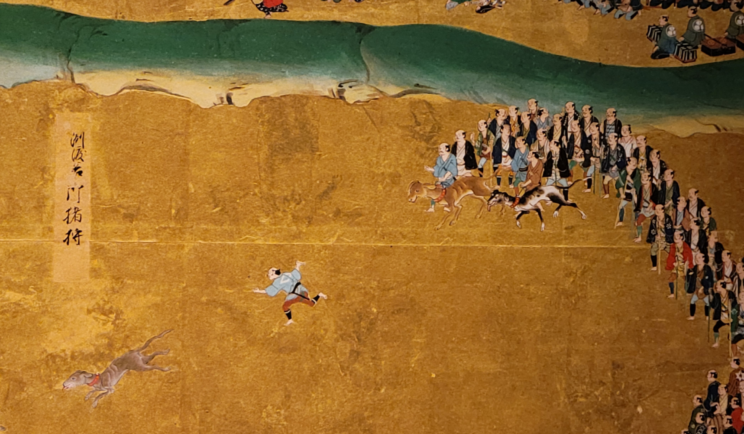 전시회 처음에 "초기에도의 모습을 그린 병풍"이 시야 가득 펼쳐져 있는데 압권이다. 17세기 전반이라니, 에도가 막부의 수도로 자리잡은 후 멀지 않은 시기의 작품이다.