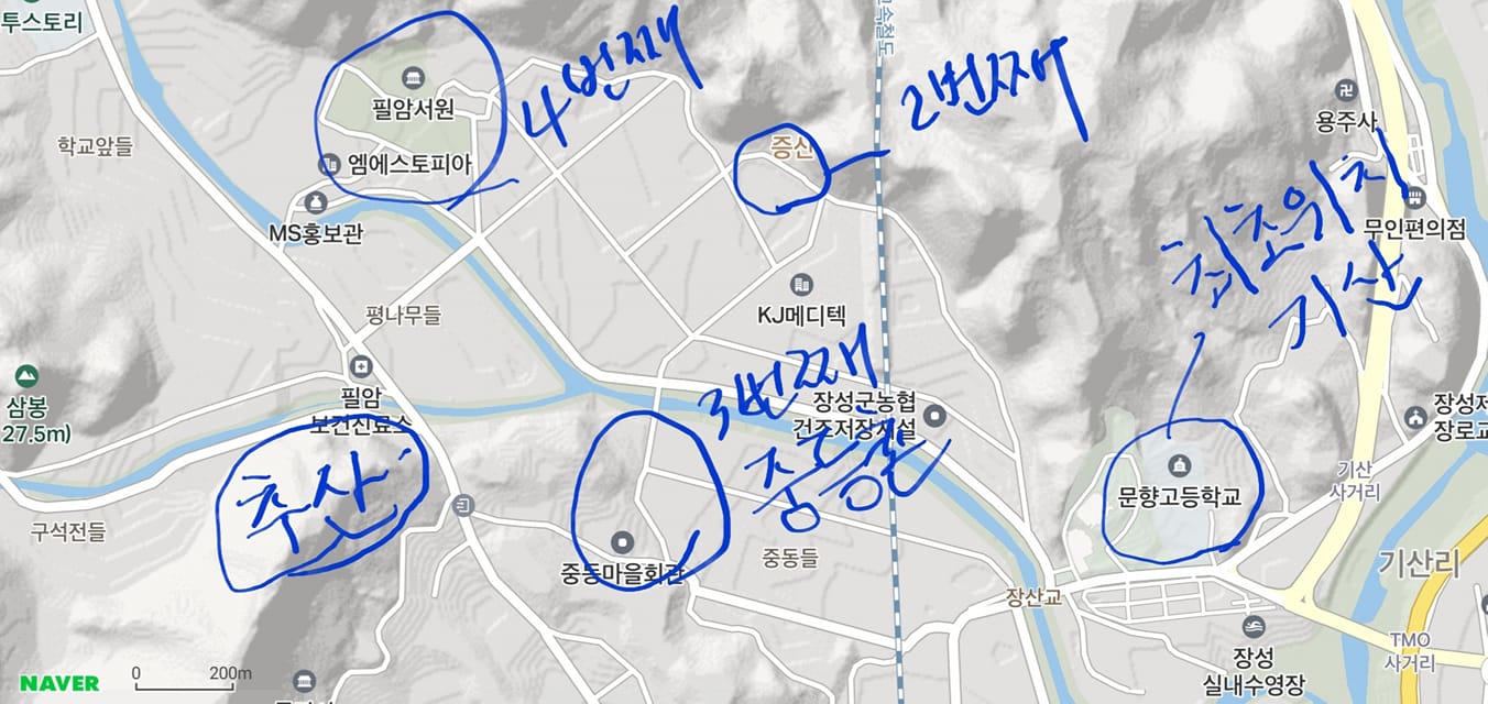 첨부한 지도에서 보듯 중등촌은 지금의 중동 마을이다.