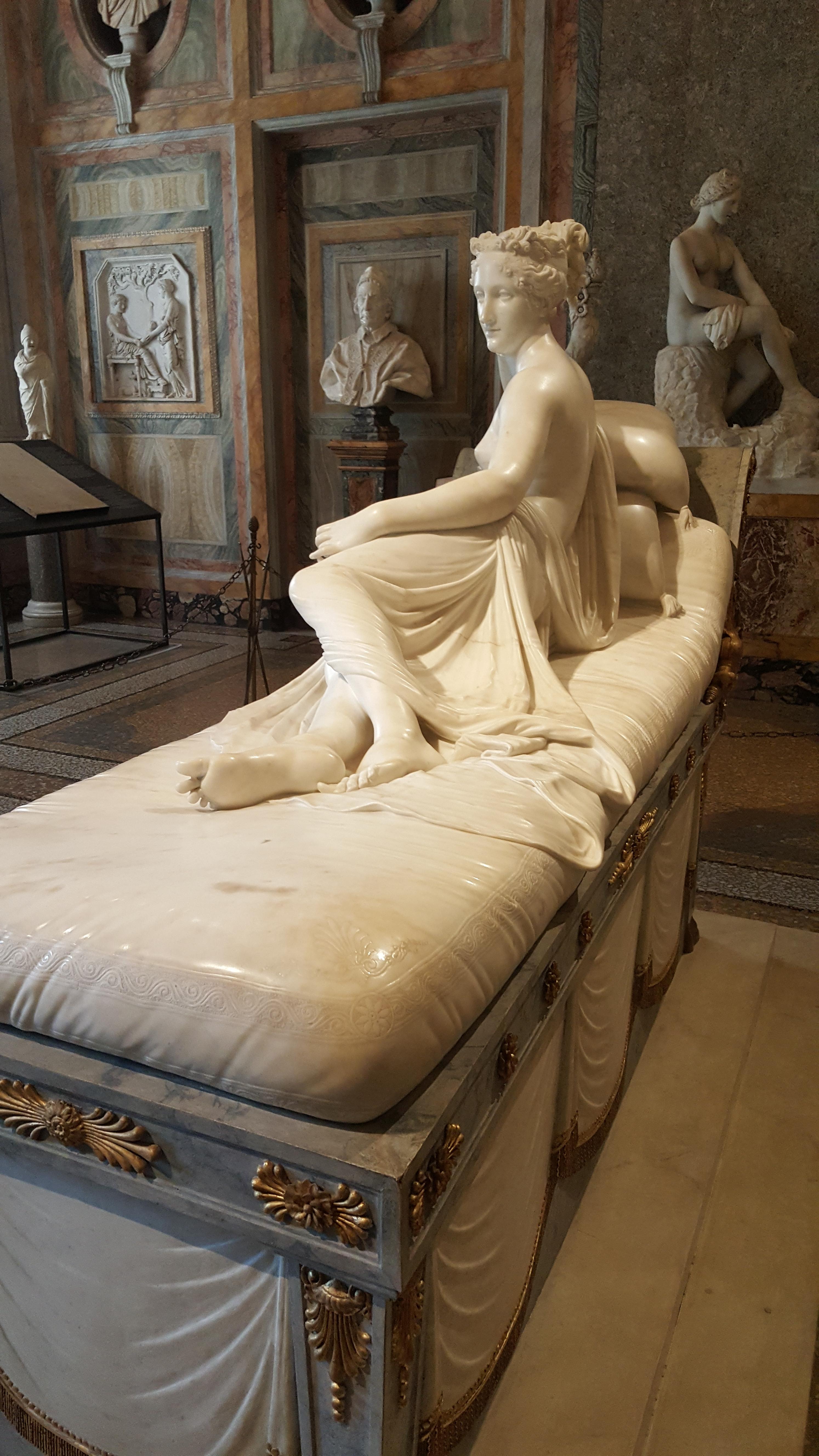이런 궁금증은 1808년 무렵 완성한 이 작품이 19세기 이탈리아 명문가 보르게세 가문으로 출가한 나폴레옹 여동생 파올리나 보르게세를 형상화했다는 우리 공장 기사에서 해명한다. 보르게세는 결혼하면서 얻은 신랑집 성이며, 파올리나가 본명일 것이다.