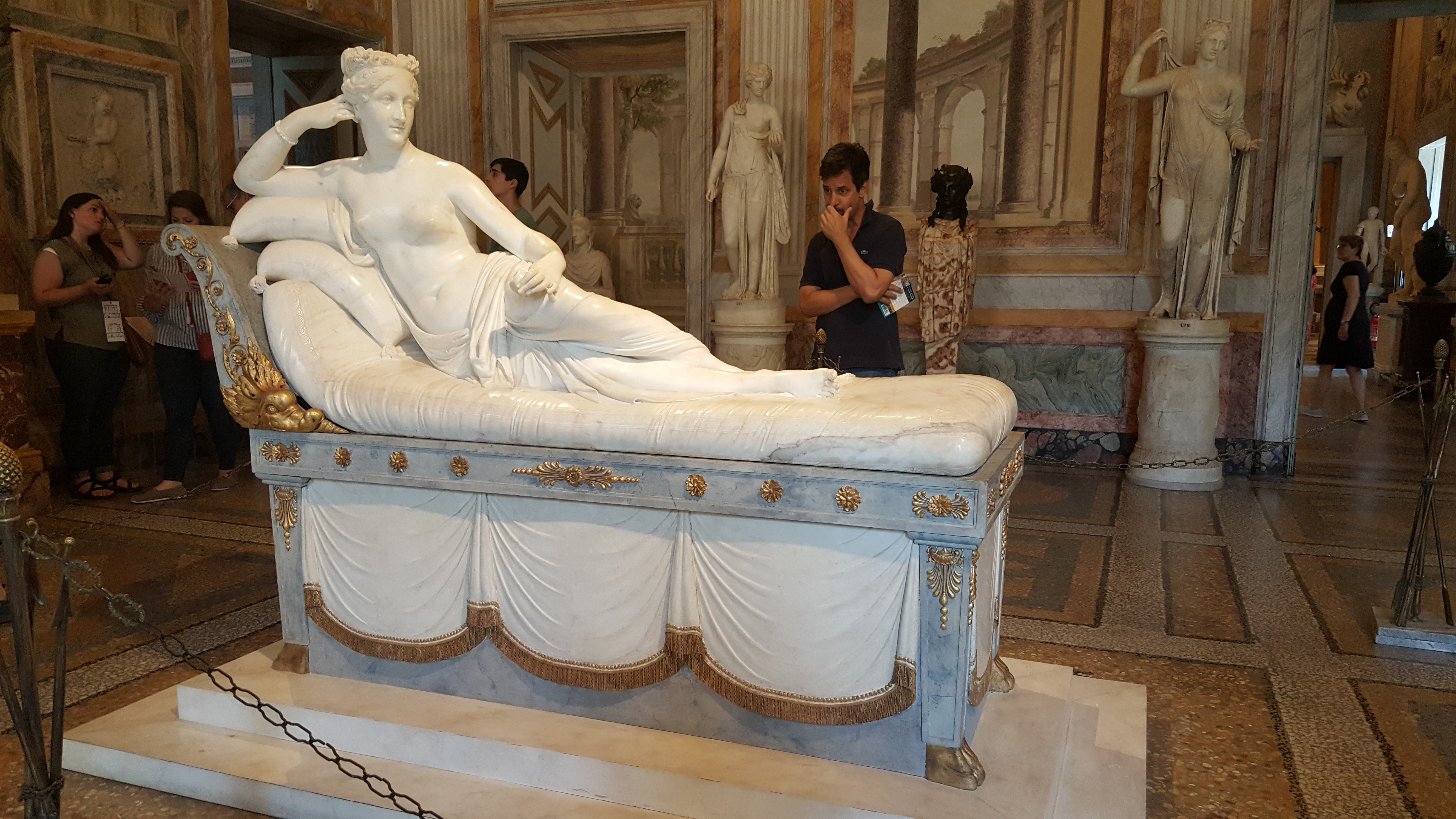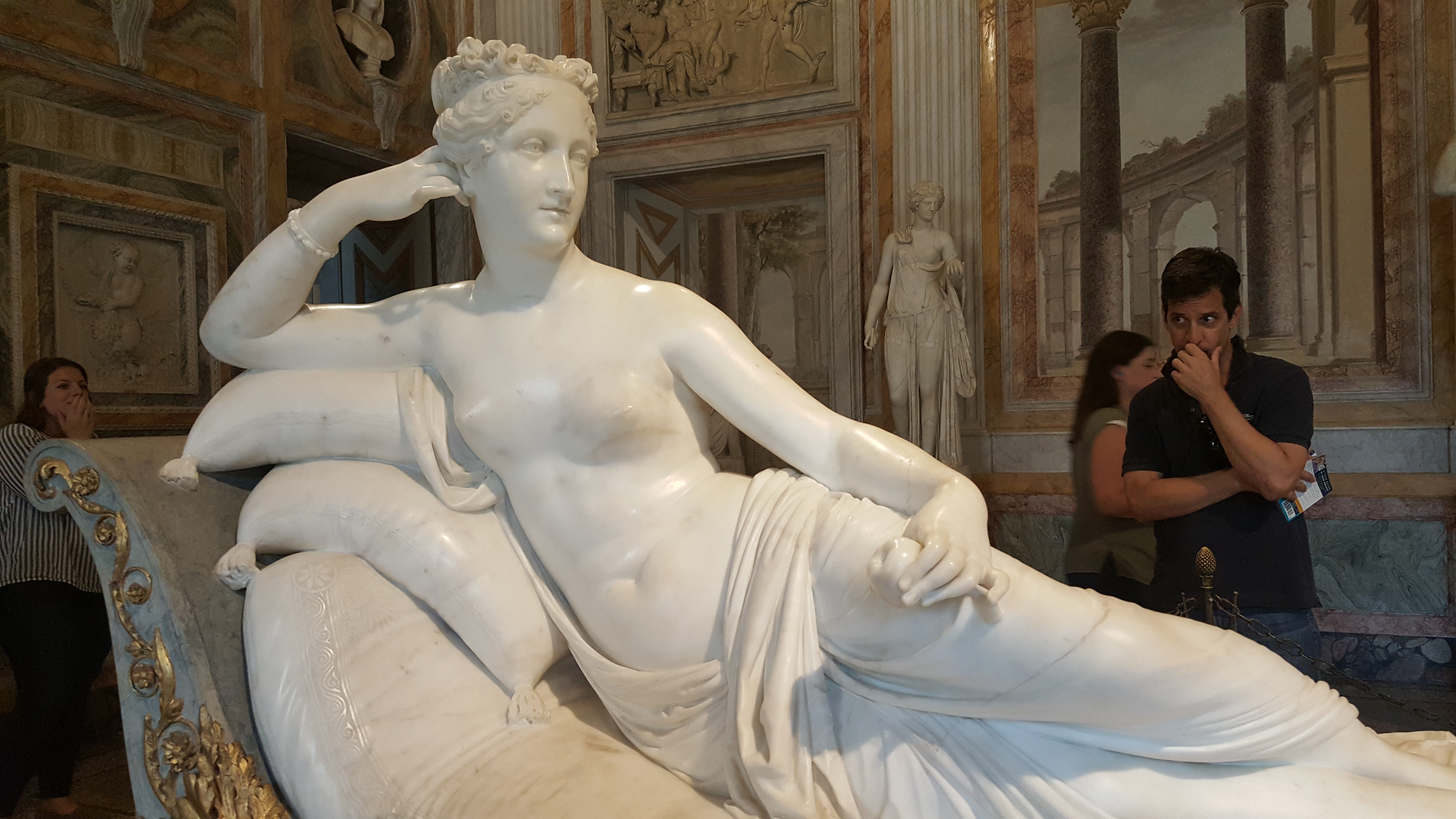 셀카 촬영을 한답시고 아마도 뒷걸음질치다가 엉덩방아를 찧었는지 어땠는지 모르지만 이곳에 소장한 안토니오 카노바 Antonio Canova (1757~1822) 라는 이태리 신고전주의 조각가 Neoclassical sculptor 작품인 파올리나 보나파르트 Paolina Bonaparte 라는 석고 조각 발가락 두 개를 부르뜨리고는 박물관이 알아채기 전에 걸음아 날 살려라 하고 냅다 튄 모양이라