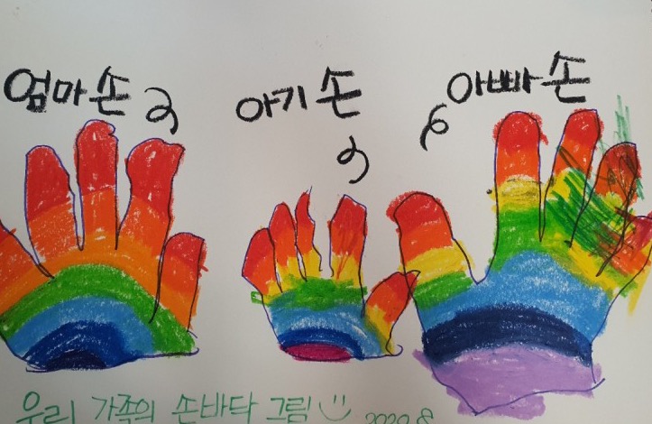 아니면 아주 정말 간단하지만 전시 한 면에는 ‘우리 가족 손도장’이라고 해서 구석기시대 가족들 처럼 손도장을 남기고 가는 것도 좋을 듯 합니다. 손바닥에 물감을 묻히는 건 어렵고, 종이에 손바닥을 대고 선따라 그리는 정도까지요? 정말 간단한 체험인데, 다녀 간거 남기고 싶어하는 그런 본능(?) 있지 않나요? (저만 있나요.ㅎㅎㅎ)
