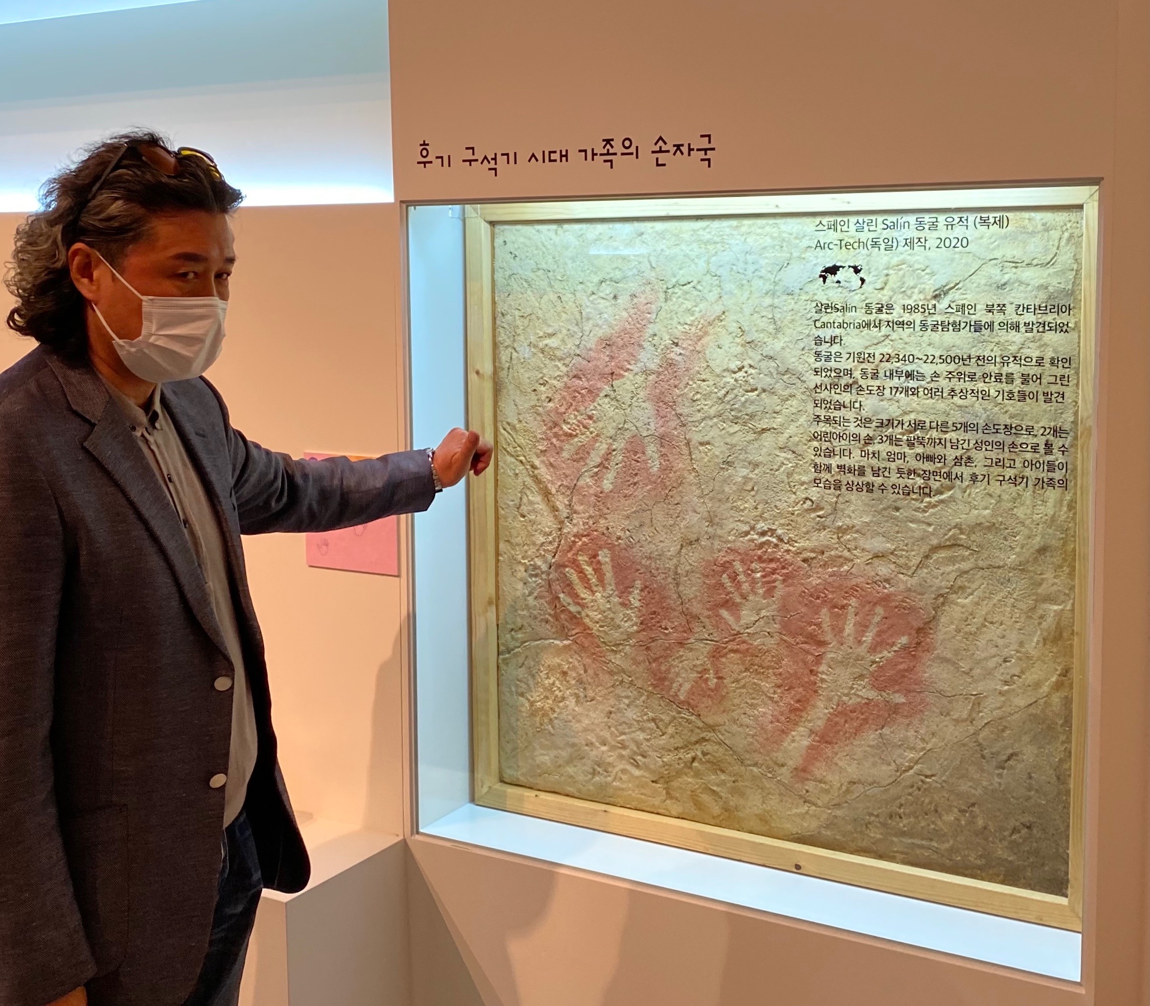 스페인 살린 동굴 유적에서 발견된 가족의 손자국을 재현했습니다. 손 크기로 아빠 손인지 아이 손인지 생각해 볼 수 있습니다.
