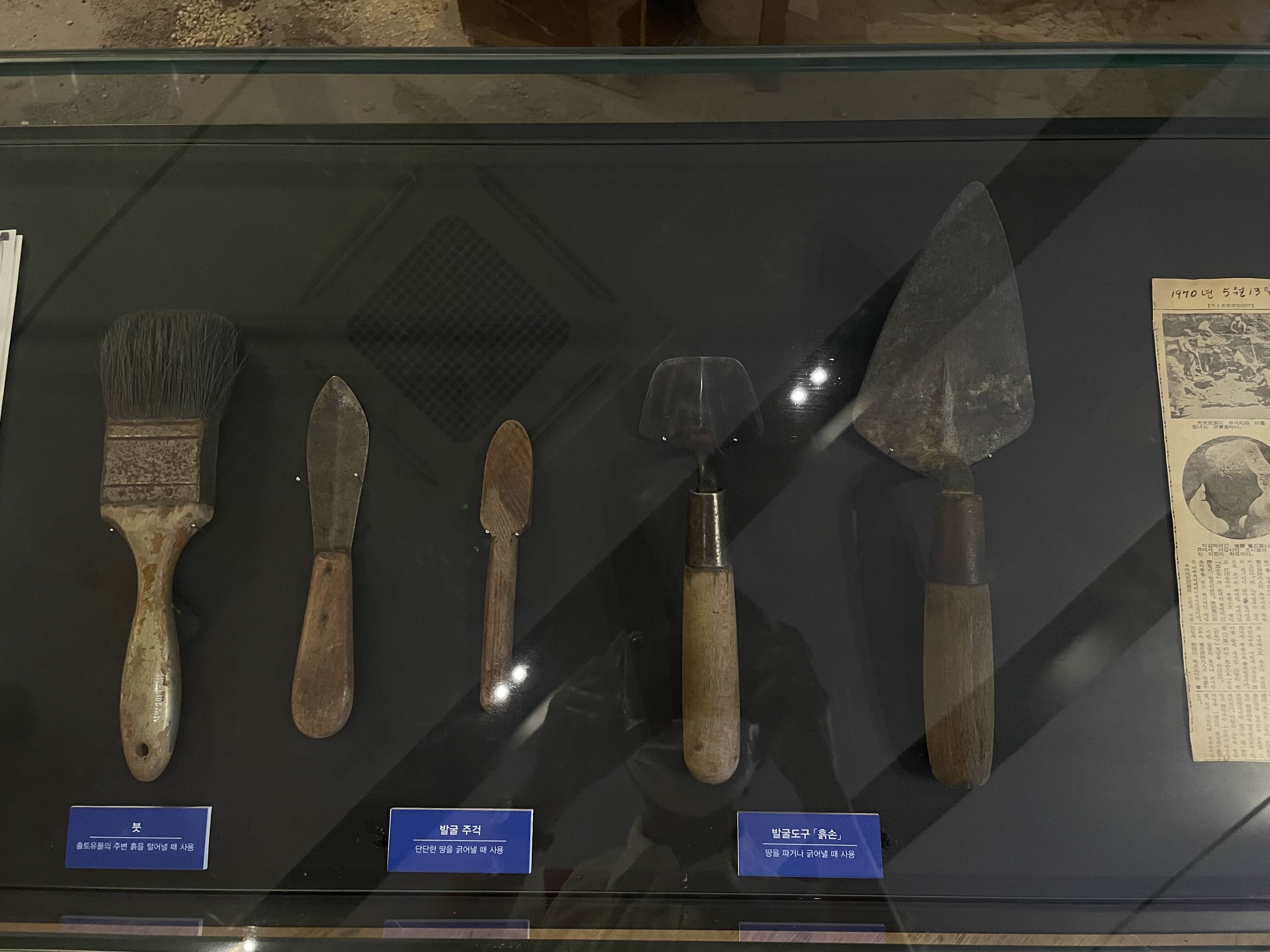 디오라마 바로 옆에는 조사원들 모습을 재현한 모형이 있습니다. 소품 하나하나가 당시 발굴조사 현장에 있는 듯한 생생한 느낌을 줍니다.