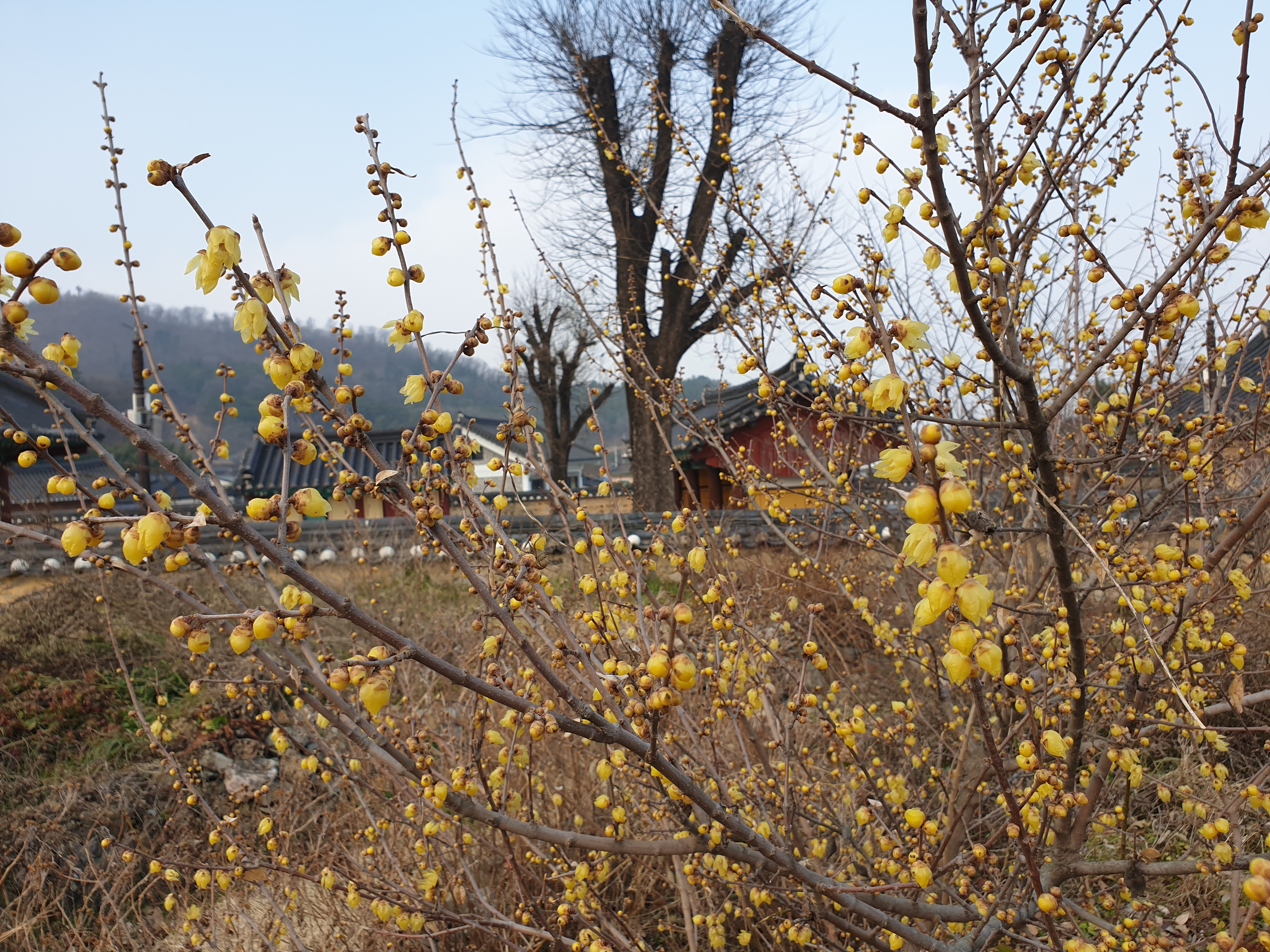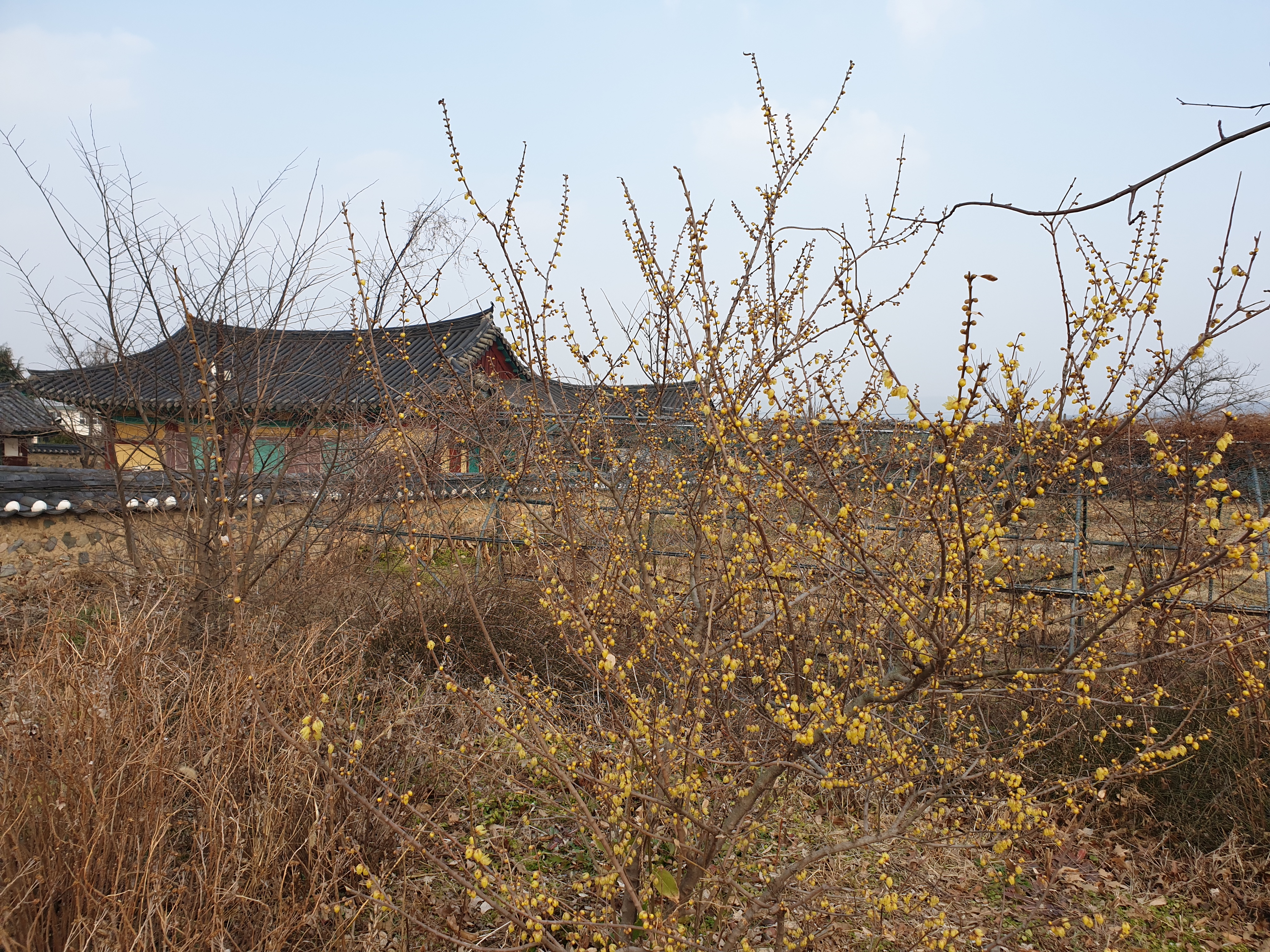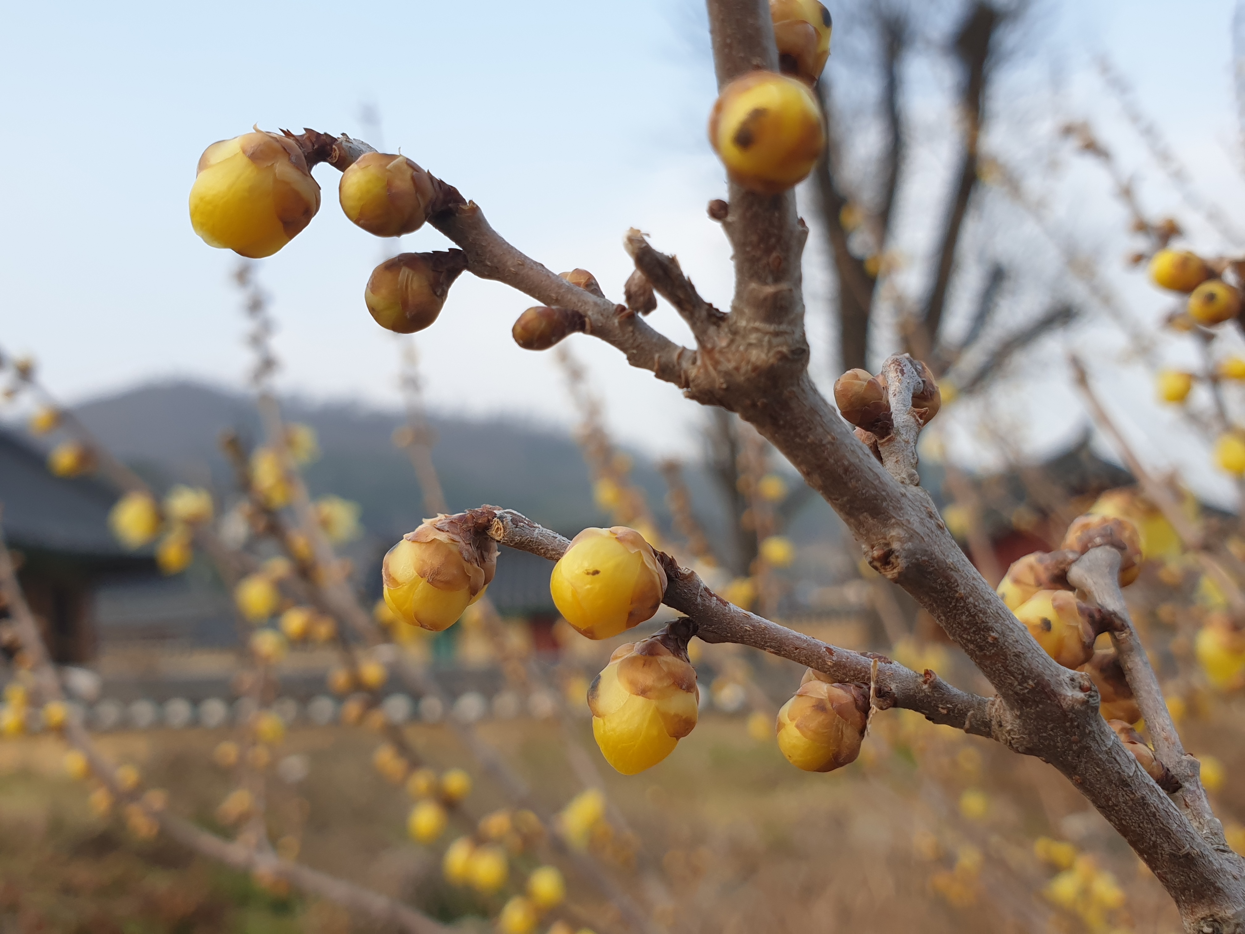 했더니 선도산 기슭 서악서원 지칭하며 그쪽 담장 외곽에 납매 한 그루 있어 한창 피었으니 가 보라 하더라.