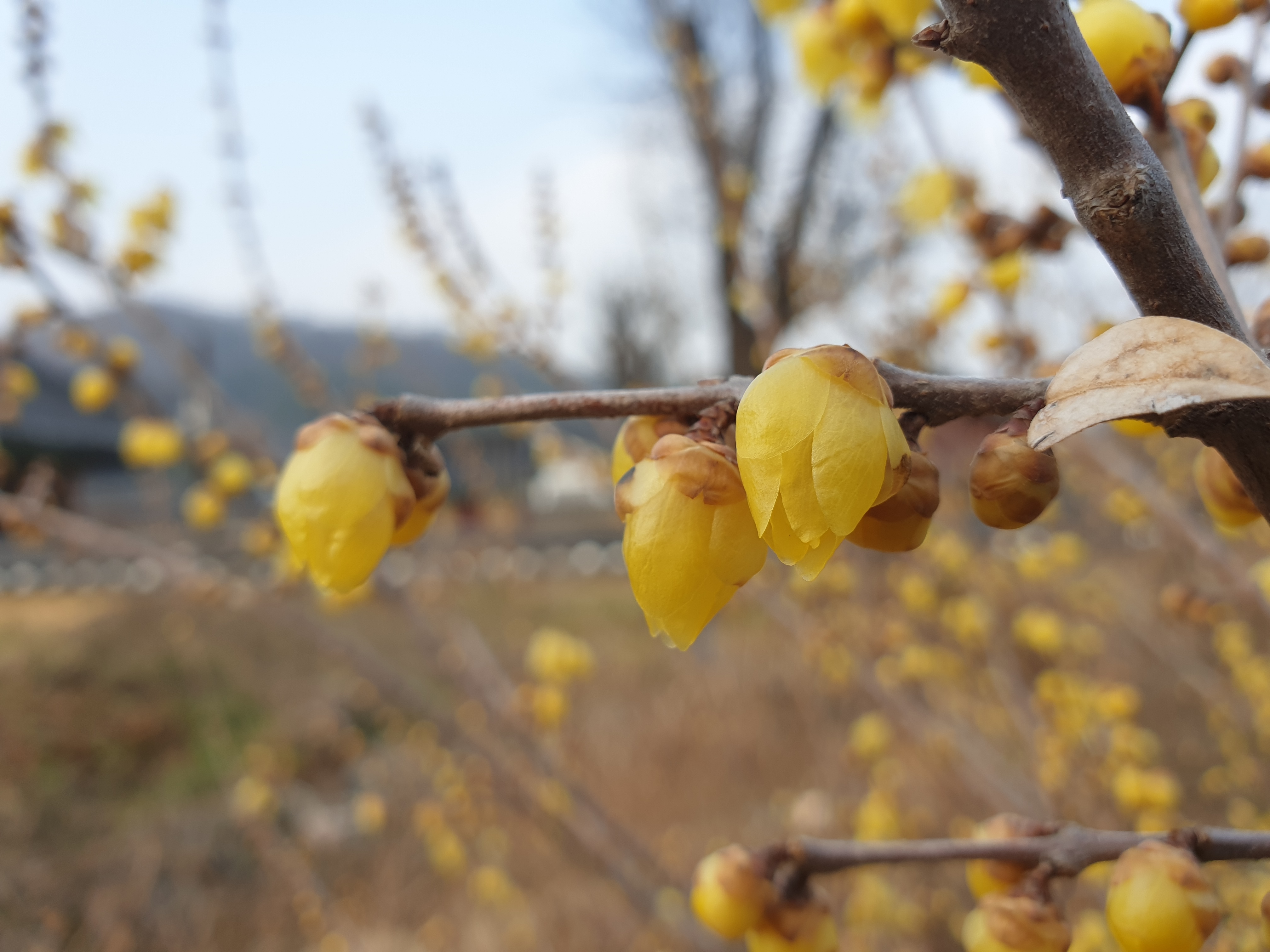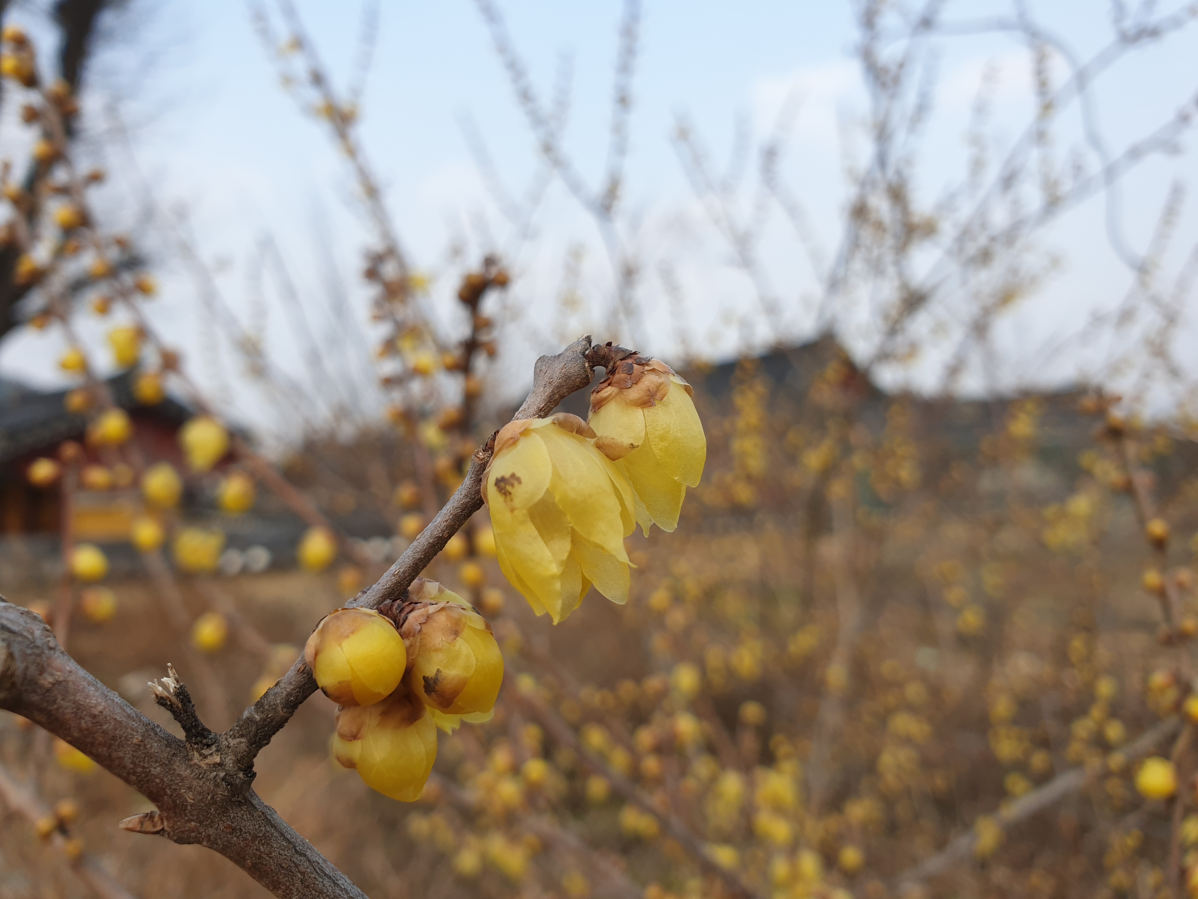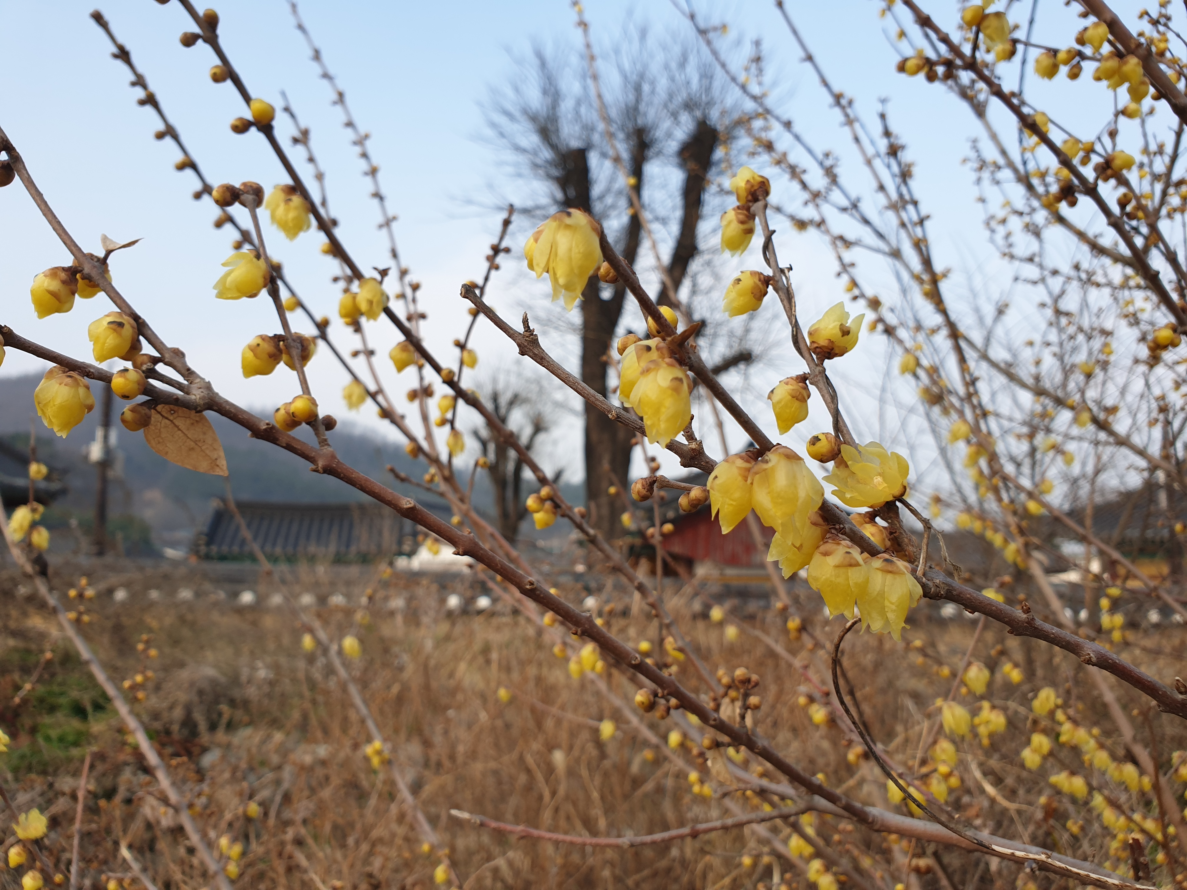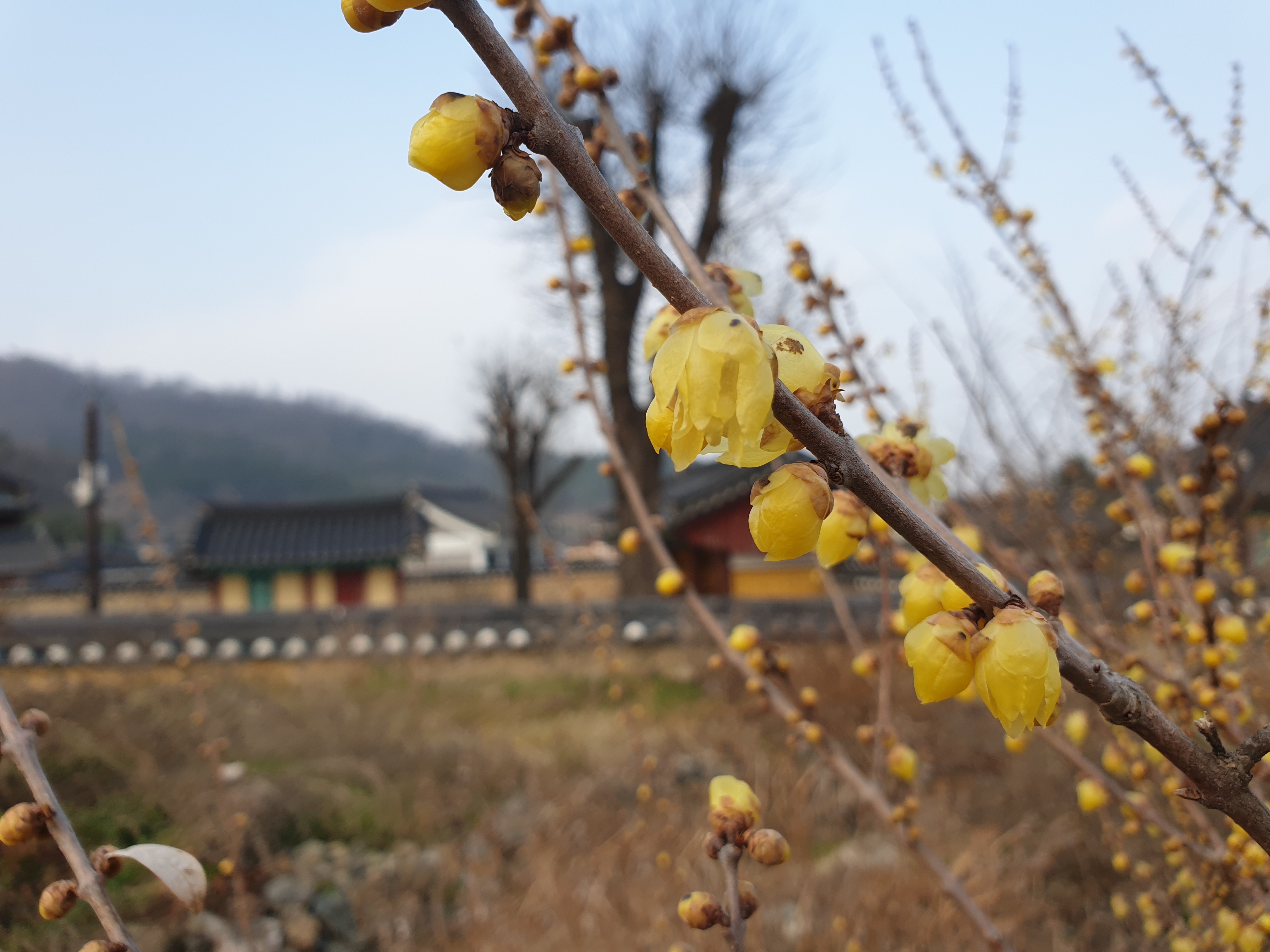 했더니 선도산 기슭 서악서원 지칭하며 그쪽 담장 외곽에 납매 한 그루 있어 한창 피었으니 가 보라 하더라.