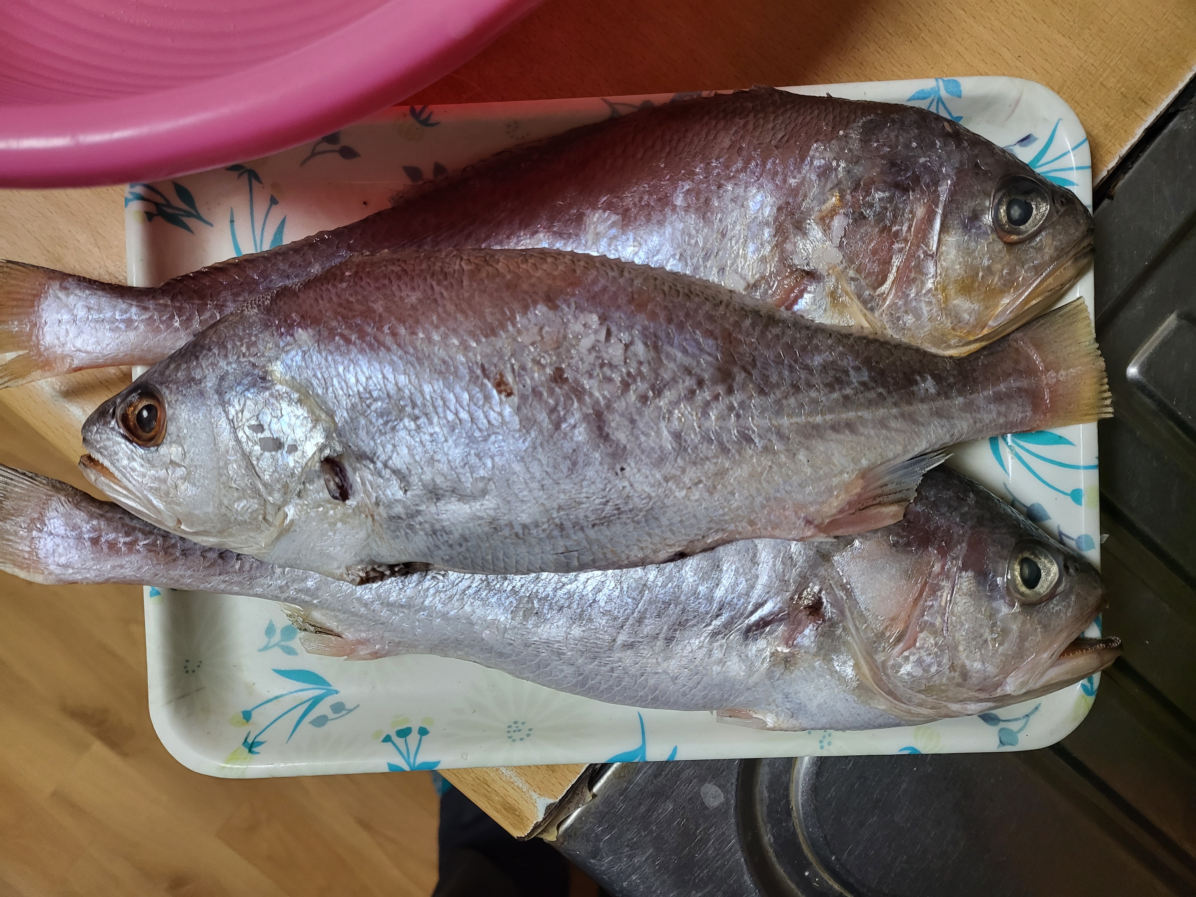 정확하게는 참조기가 아니고 부세입니다. 둘 다 농어목 민어과인데 참조기 대용으로 요즘은 거의 부세를 씁니다. 대가리 위쪽 모양, 측선, 꼬리지느러미, 전체적인 체형 등이 약간 다른데 대부분의 사람들은 구별 못하더라구요. 저 정도 사이즈의 참조기는 요즘 한국에서는 안 잡힙니다.