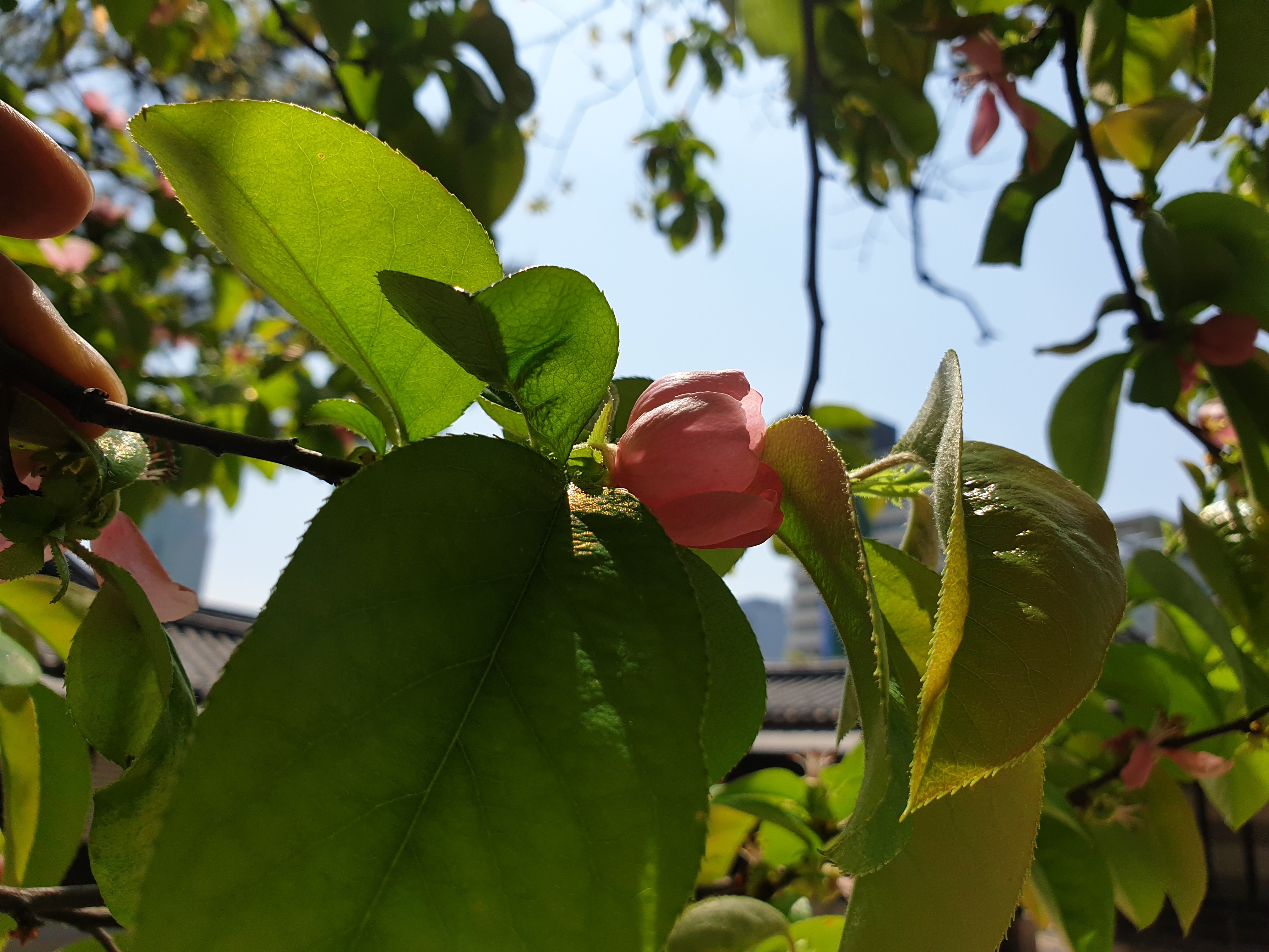 모과 역시 꽃을 피우나 덩치가 코딱지요 색감 역시 흐리멍덩한 까닭에 많은 이가 되묻기를