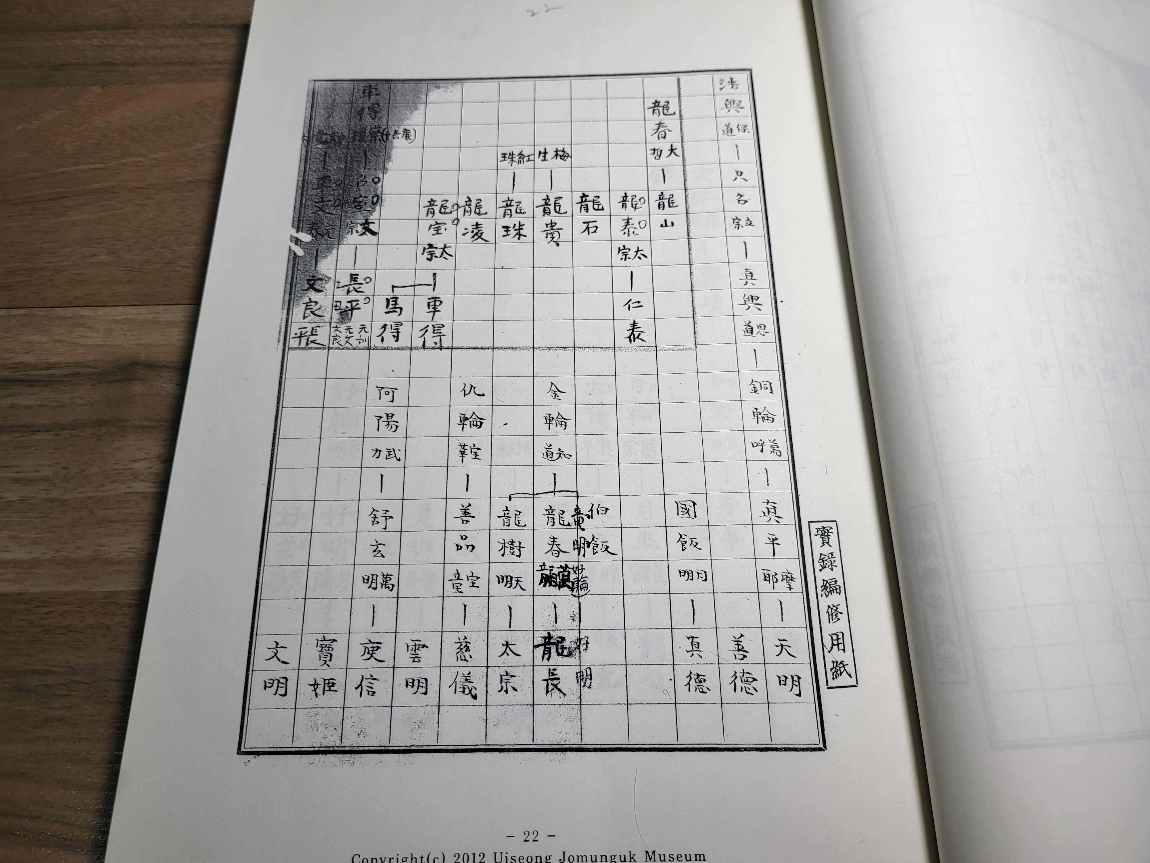 이는 남당 박창화가 필사한 것이다. 다시 말해 이 족보가 박창화가 그린 것이라고 해도, 그것은 당연히 그가 참조한 화랑세기의 그것을 토대로 해서 그린 것이라는 점에서 매우 중대한 의미를 지닌다.