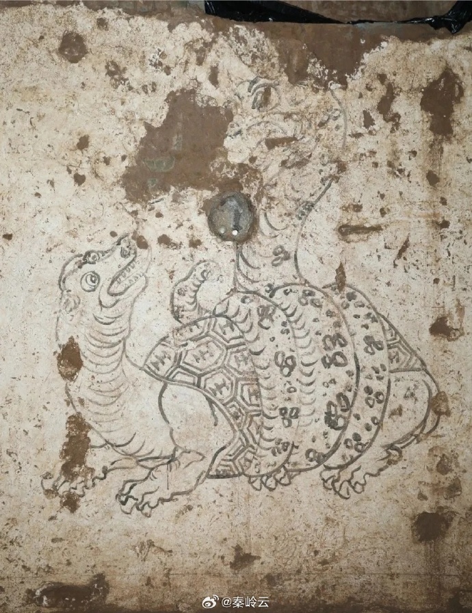 묘실 북벽 서쪽은 현무도玄武图라, 형상이 거대하고 생동감 있다.